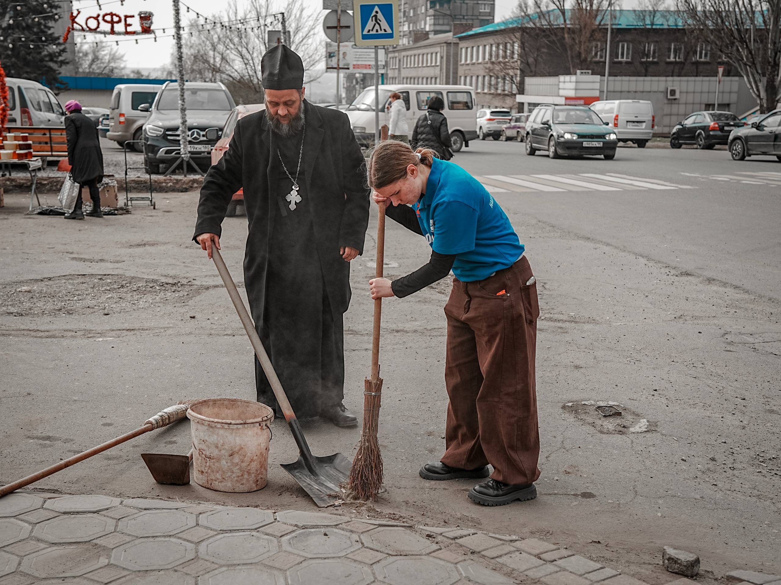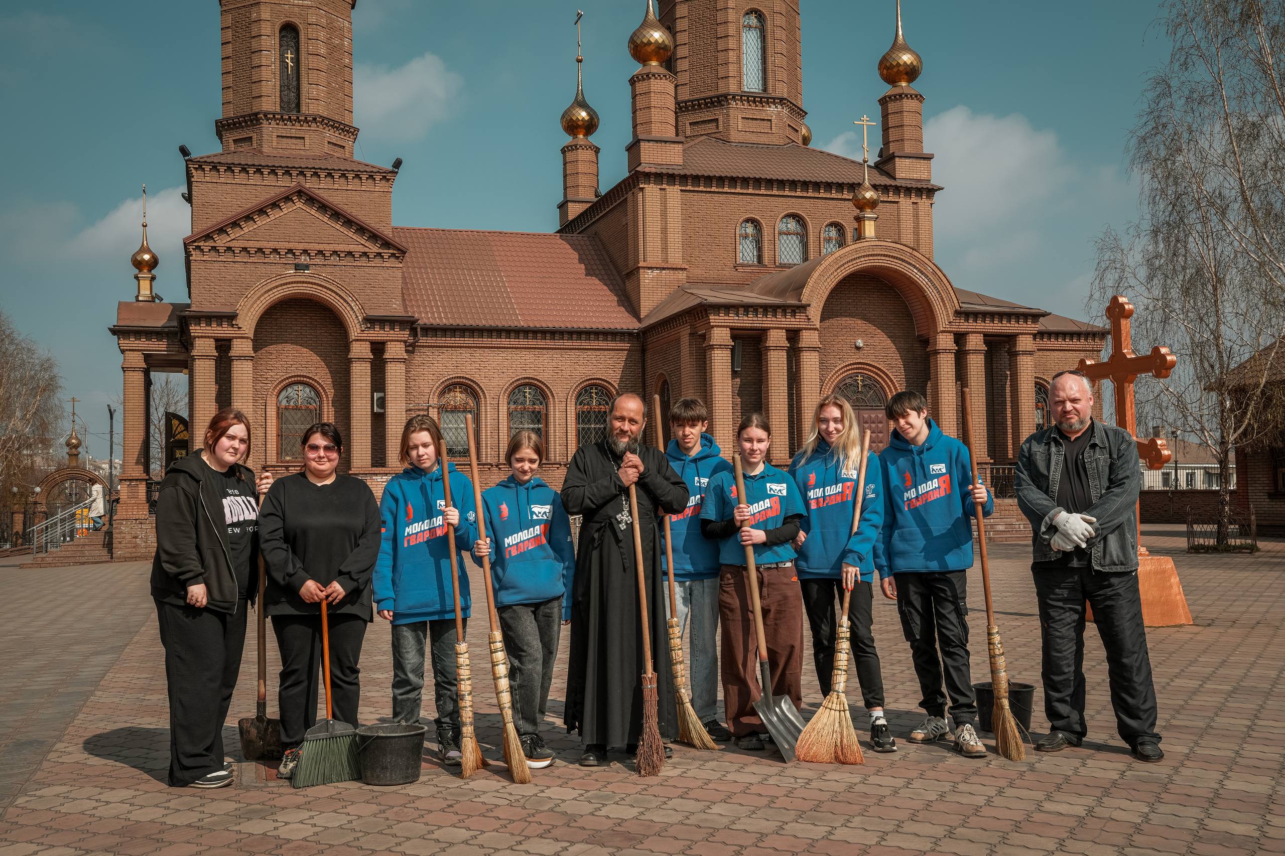 Молодёжь и представитель церкви вместе трудились ради общей цели — сделать наш храм чище и красивее к Великому празднику Пасхи.