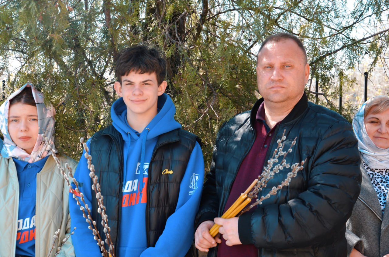 Председатель Торезского городского совета Александр Казмерчук совместно с руководителем аппарата Торезского городского совета Ириной Шевчук и активистами Торезского штаба МГЕР посетили праздничную службу в Храме Святителей Московских Петра, Алексия, Ионы, Филиппа и Ермогена города Торез и приняли участие в освящении верб.