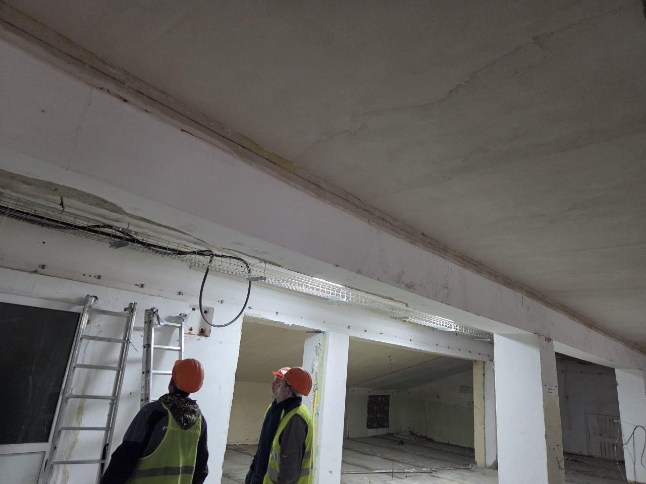 «Специалисты завершают заливку стяжки, прокладывают сети: ложный водопровод, отопление, электрику, монтируют профиль на стенах», — отметил Мурат Маиров.