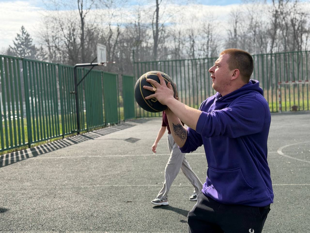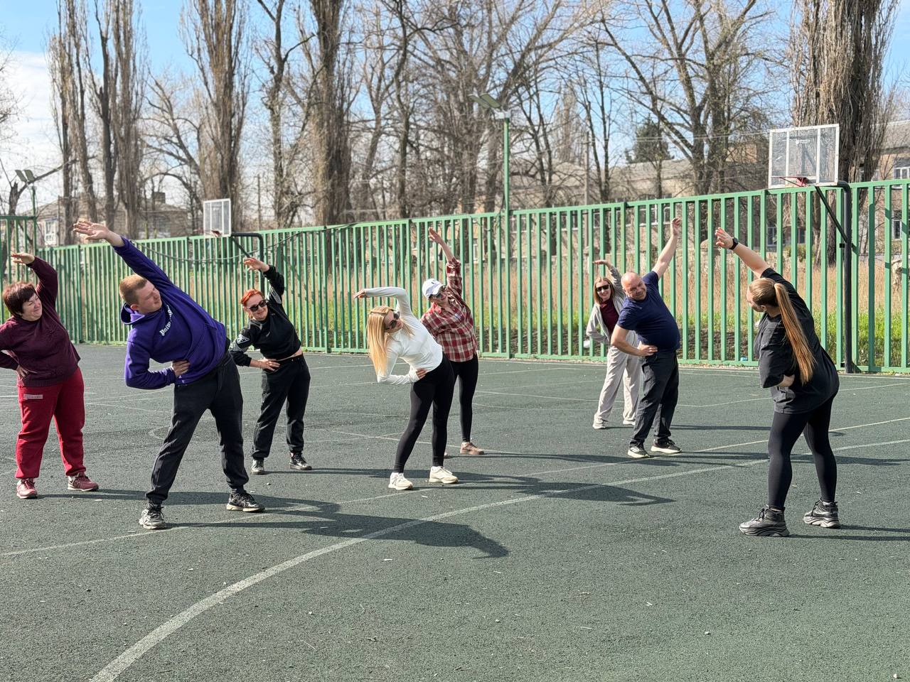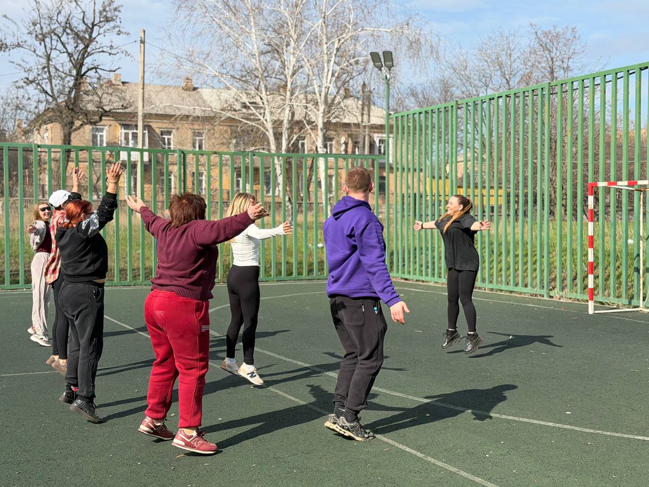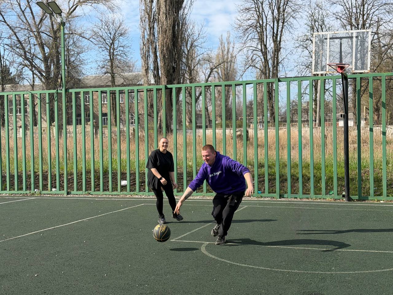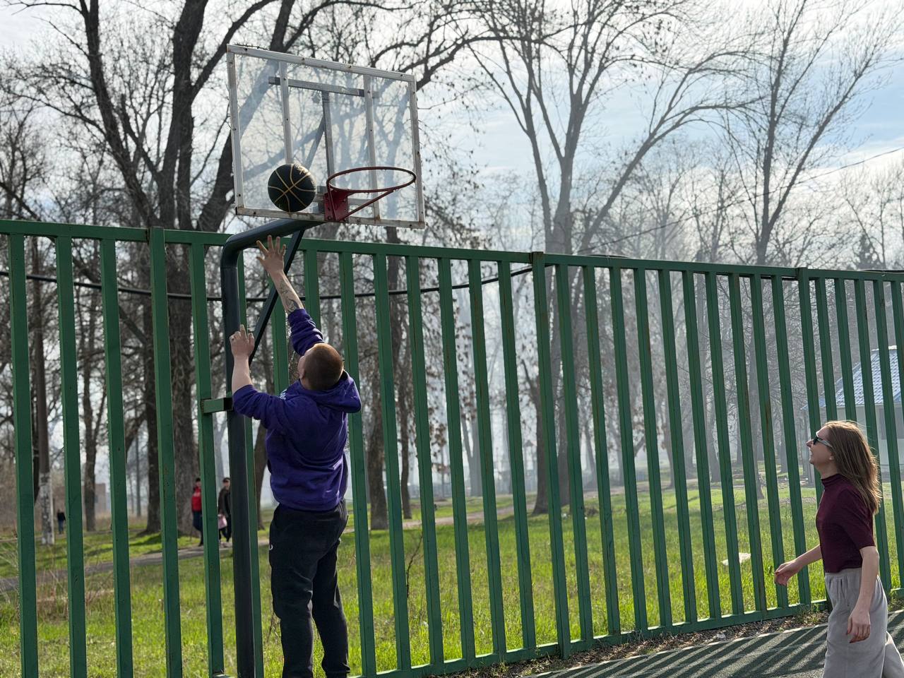 Так, сотрудники администрации провели спортивную зарядку на свежем воздухе, а в завершении сыграли в баскетбол .