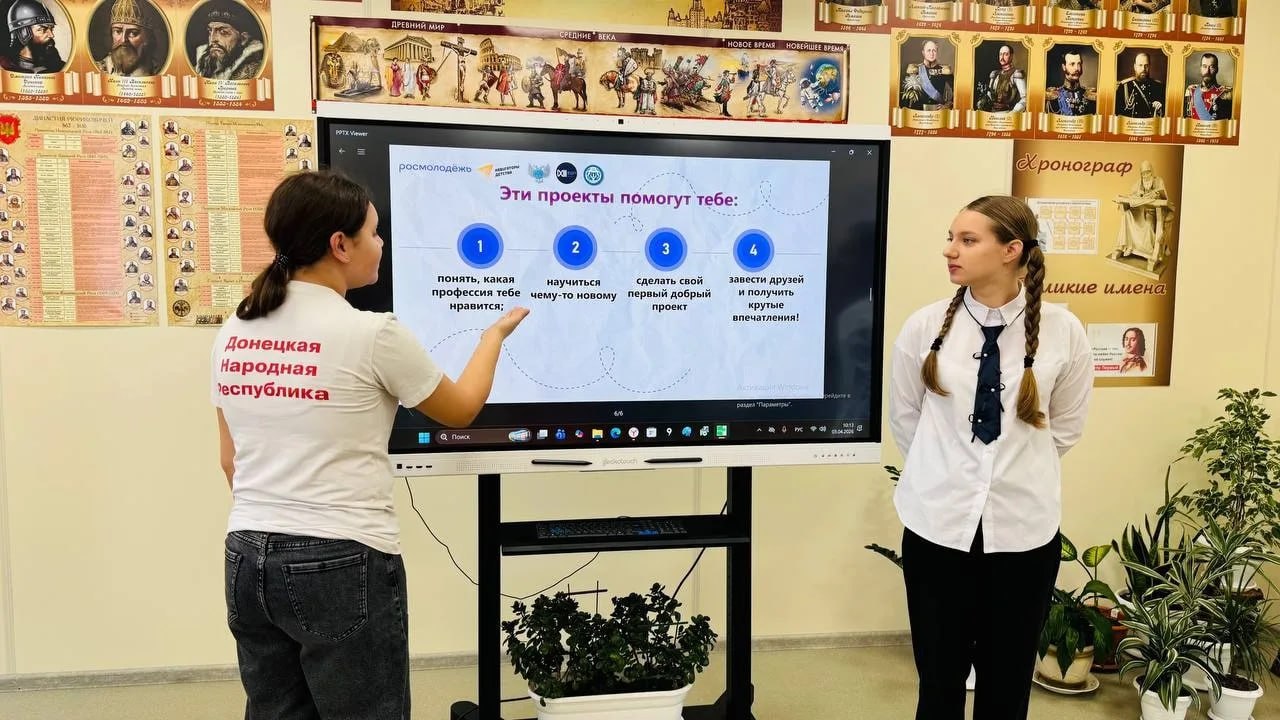 В школах, техникумах и колледжах Донецкой Народной Республики на весенних каникулах прошли единые классные часы по теме «Донбасс молодой», посвящённые проектам Федерального агентства по делам молодёжи.