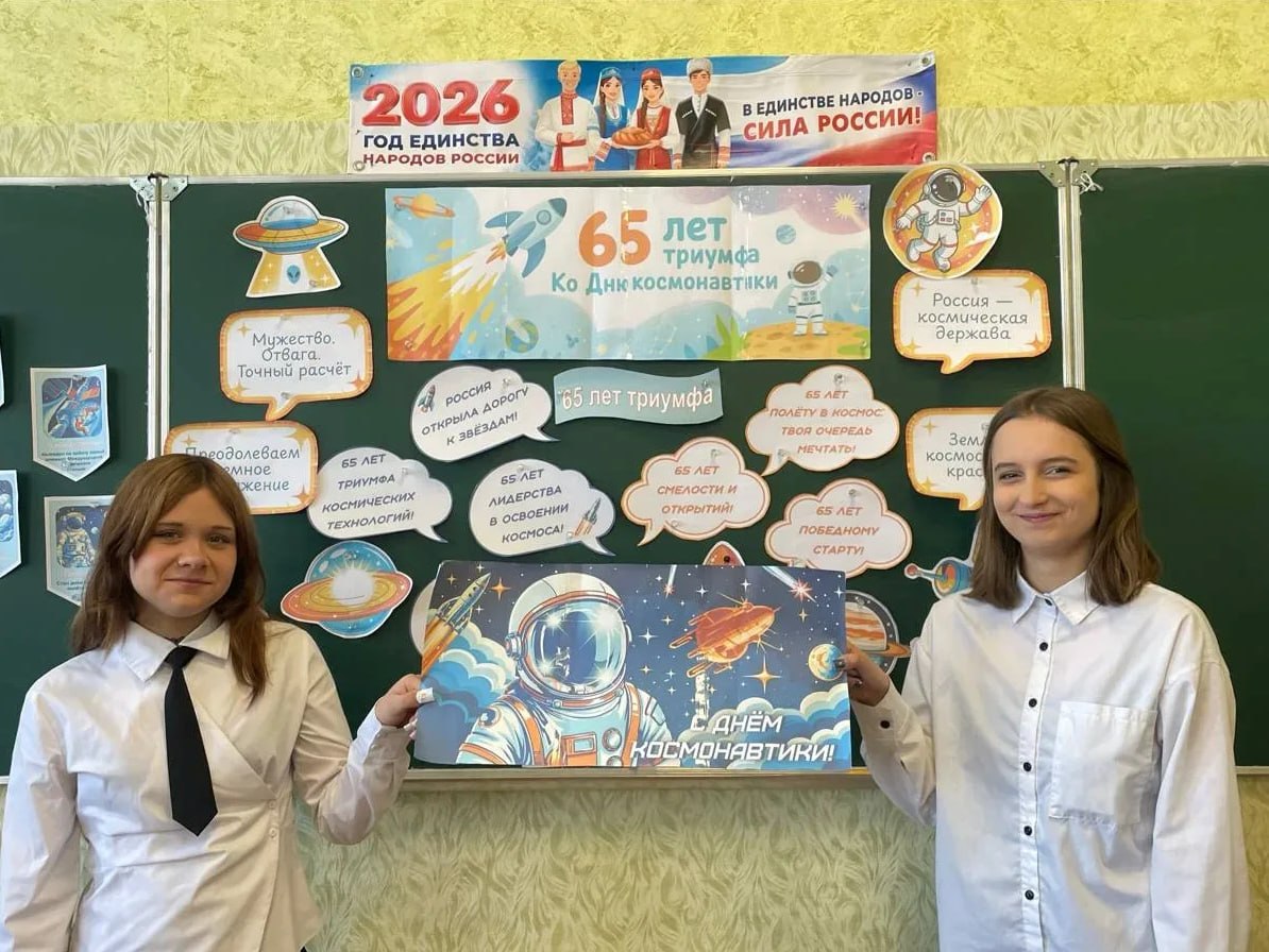 6 апреля в школах Шахтерского округа прошли занятия проекта «Разговоры о важном» на тему «65 лет триумфа. 80 лет космической отрасли. Ко Дню космонавтики».