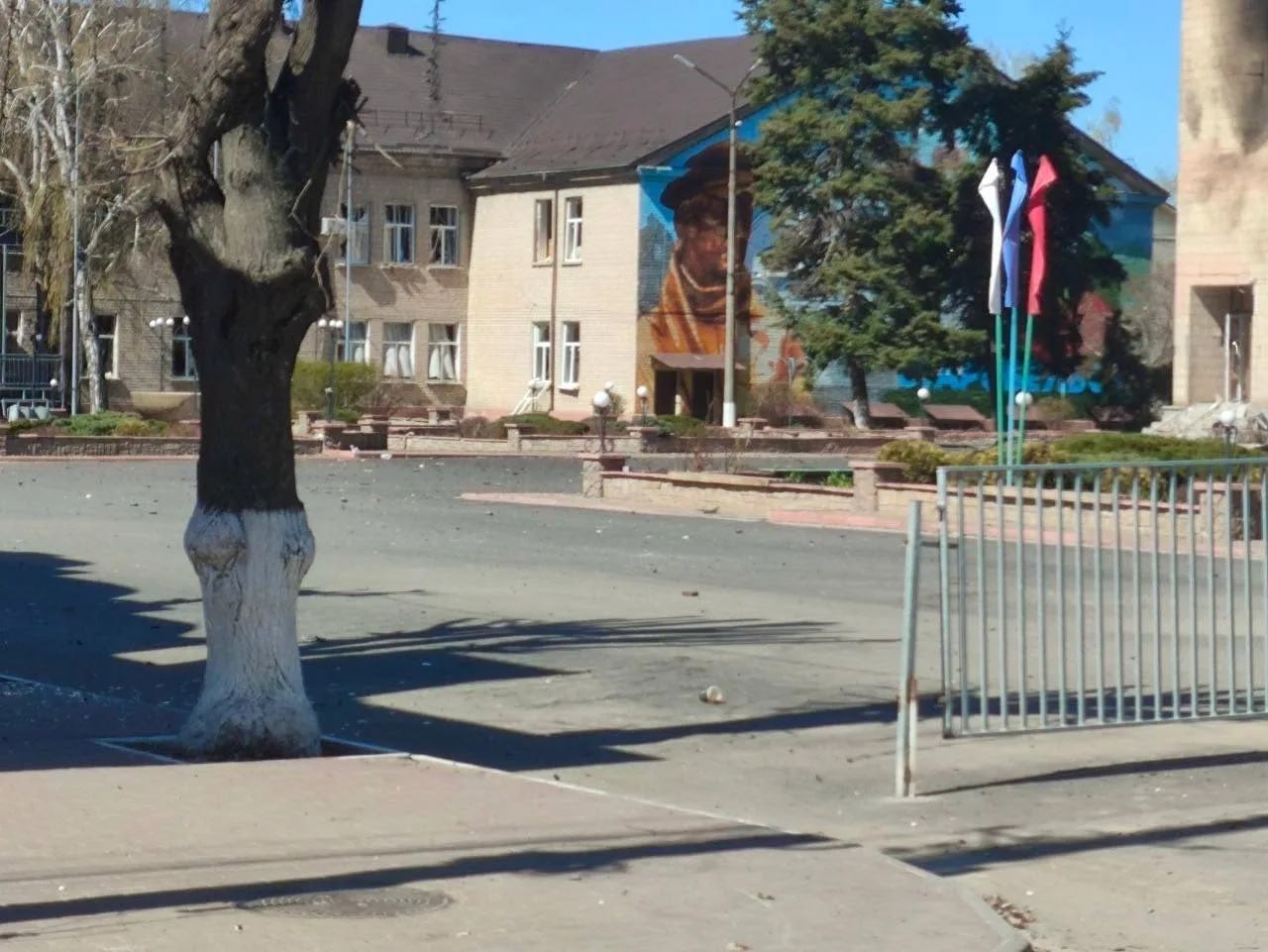 Повреждены гражданские объекты рядом: отделение МФЦ, Дворец культуры, банковское отделение, магазин.