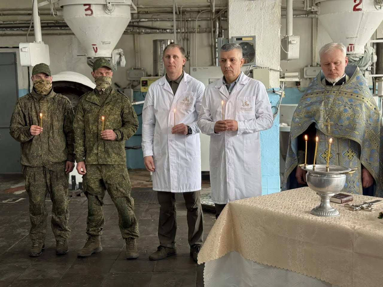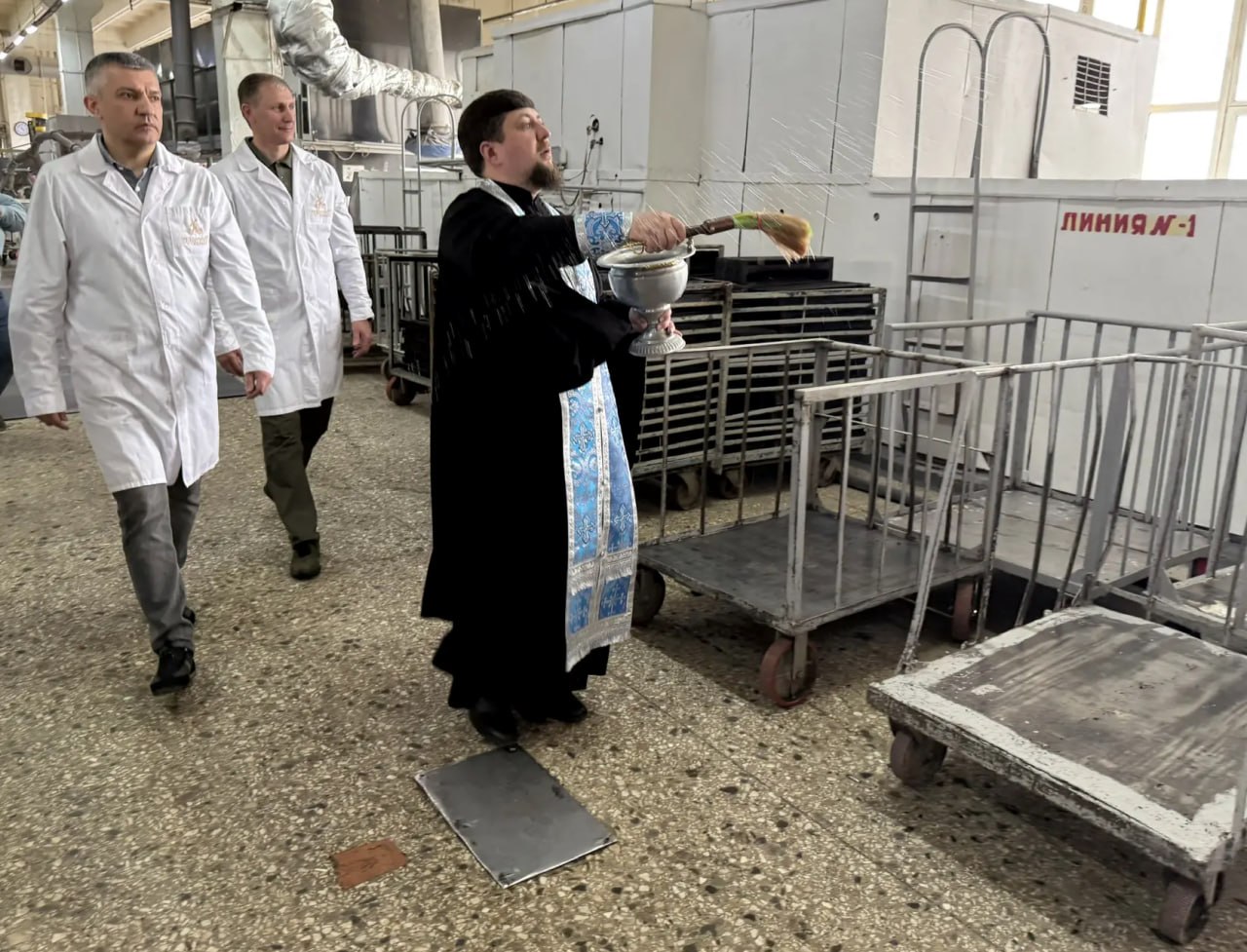 Согласно православным традициям, перед стартом работы сотрудники хлебозавода получили благословение. Священнослужители Шахтерского благочиния провели молебен, освятили сырье и оборудование, задействованное при производстве куличей.