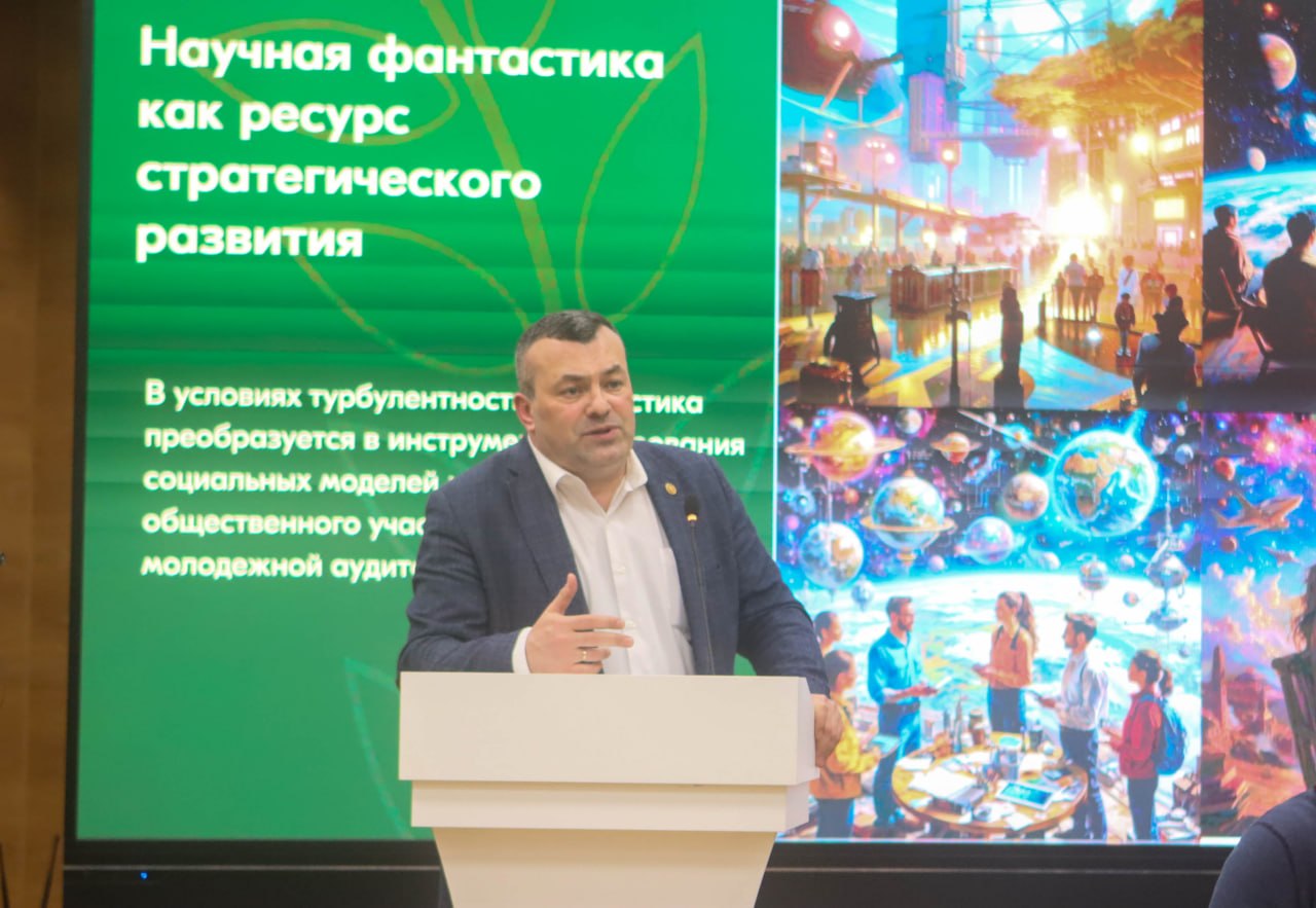 Во второй части своего выступления Председатель Общественной палаты ДНР рассказал о построении общества через литературную фантастику. Он предложил участникам форума пройти опрос и выбрать свое будущее для России. Ранее такой опрос проводился среди участников различных мероприятий в регионах. Результаты помогут сформировать образ страны, в которой хотят жить наши граждане.