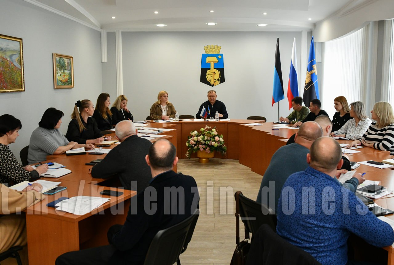 Провёл рабочее совещание с заместителями руководителей Управ внутригородских районов администрации г.о. Донецк, представителями Минстроя ДНР и ГУП ДНР «Ритуал».