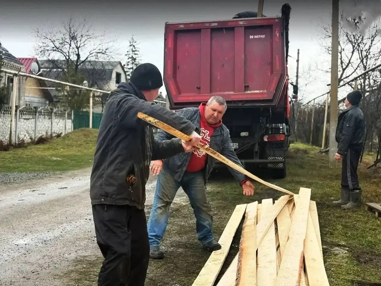 Дорожники передали строительные материалы для ремонта дома: шифер, доску, отсев и цемент.