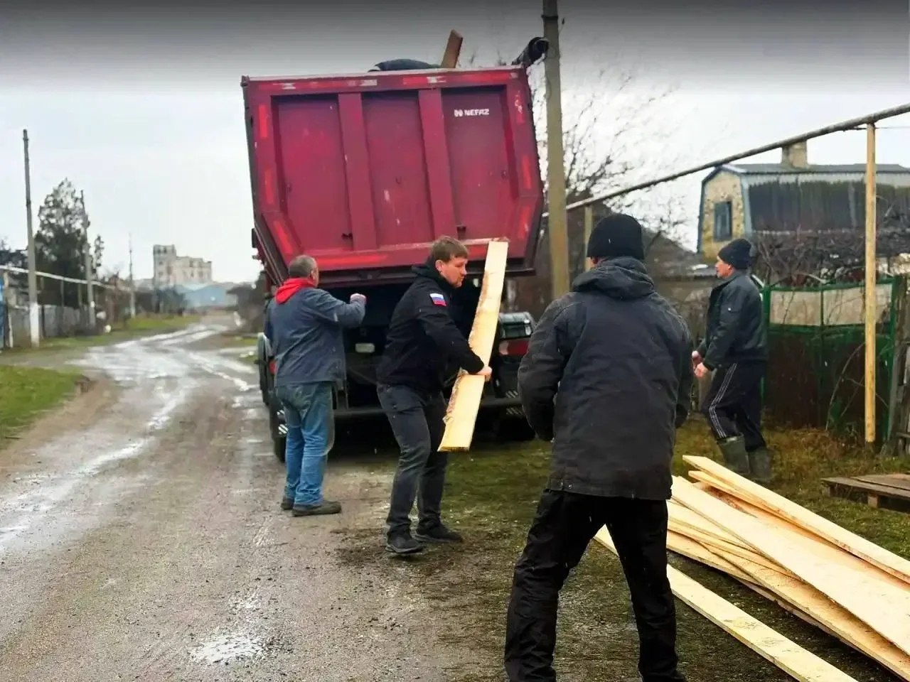 Команда Пуровского дорожно-строительного управления помогает семье из Волновахского округа.