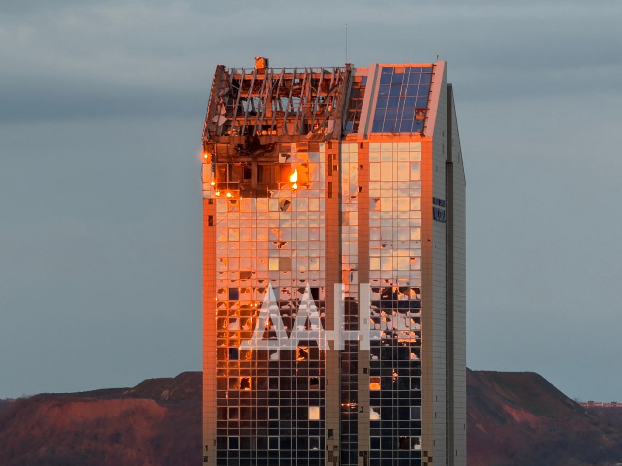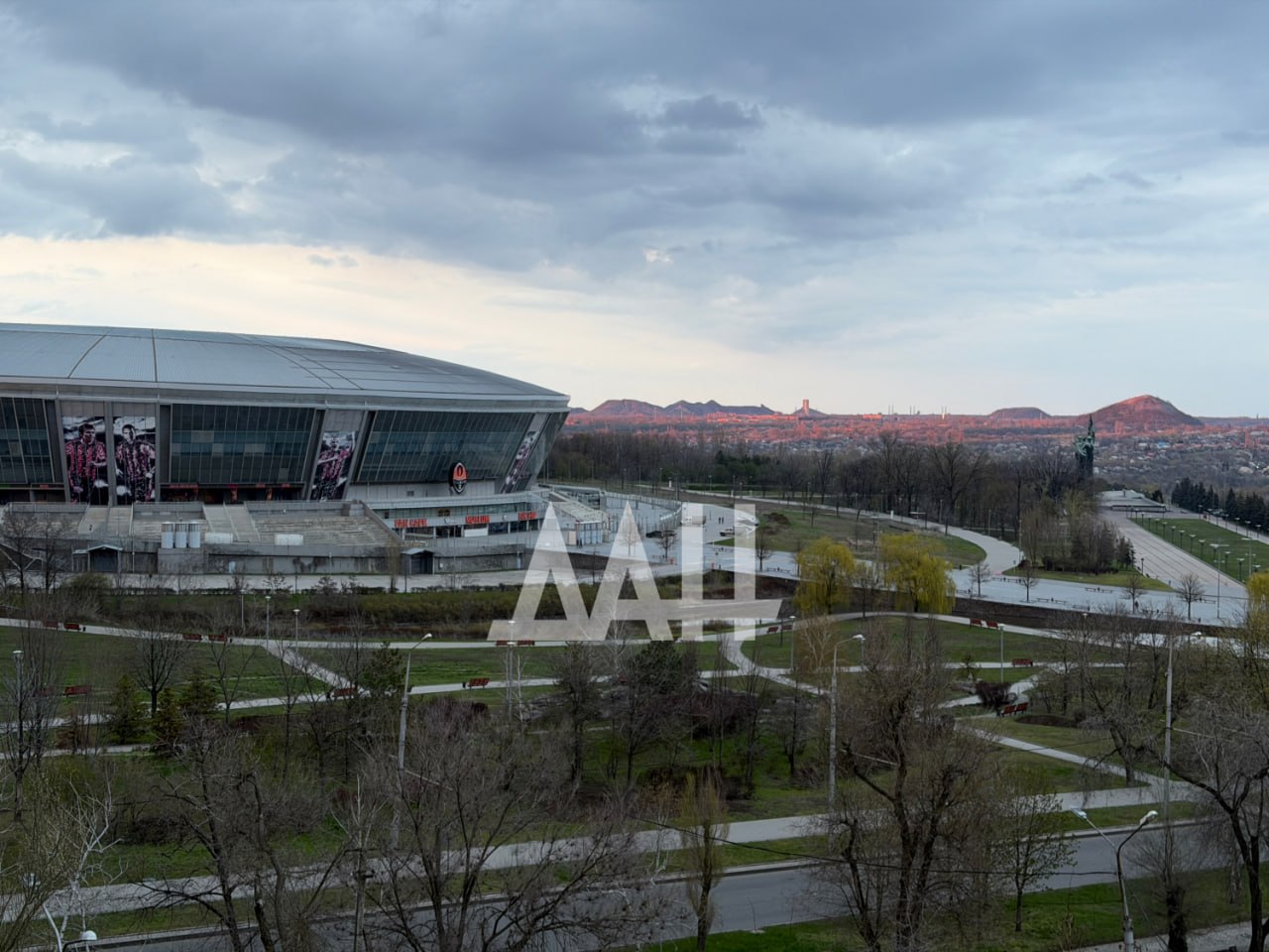 На снимках — "Донбасс Арена", монумент «Твоим освободителям, Донбасс» и остов гостиницы «Виктория». Разрушенные стёкла последней, словно драгоценные осколки, поймали и переломили тепло уходящего солнца.