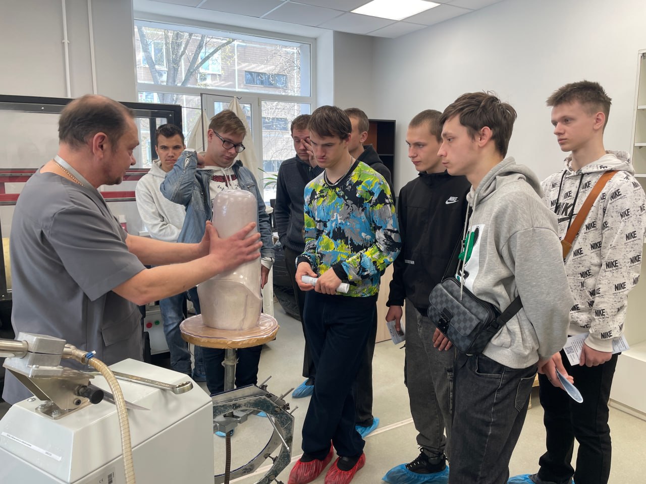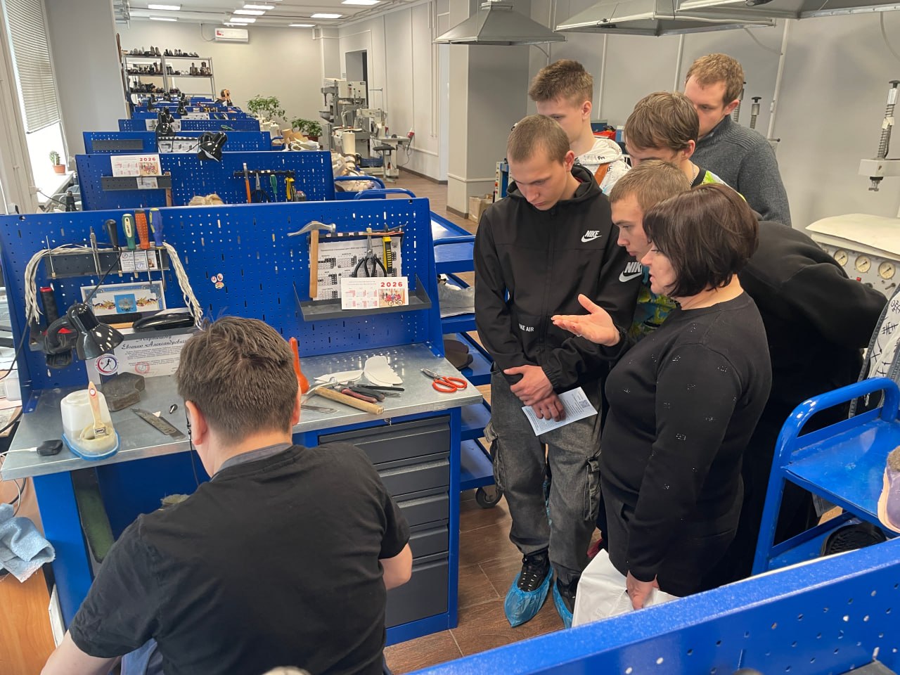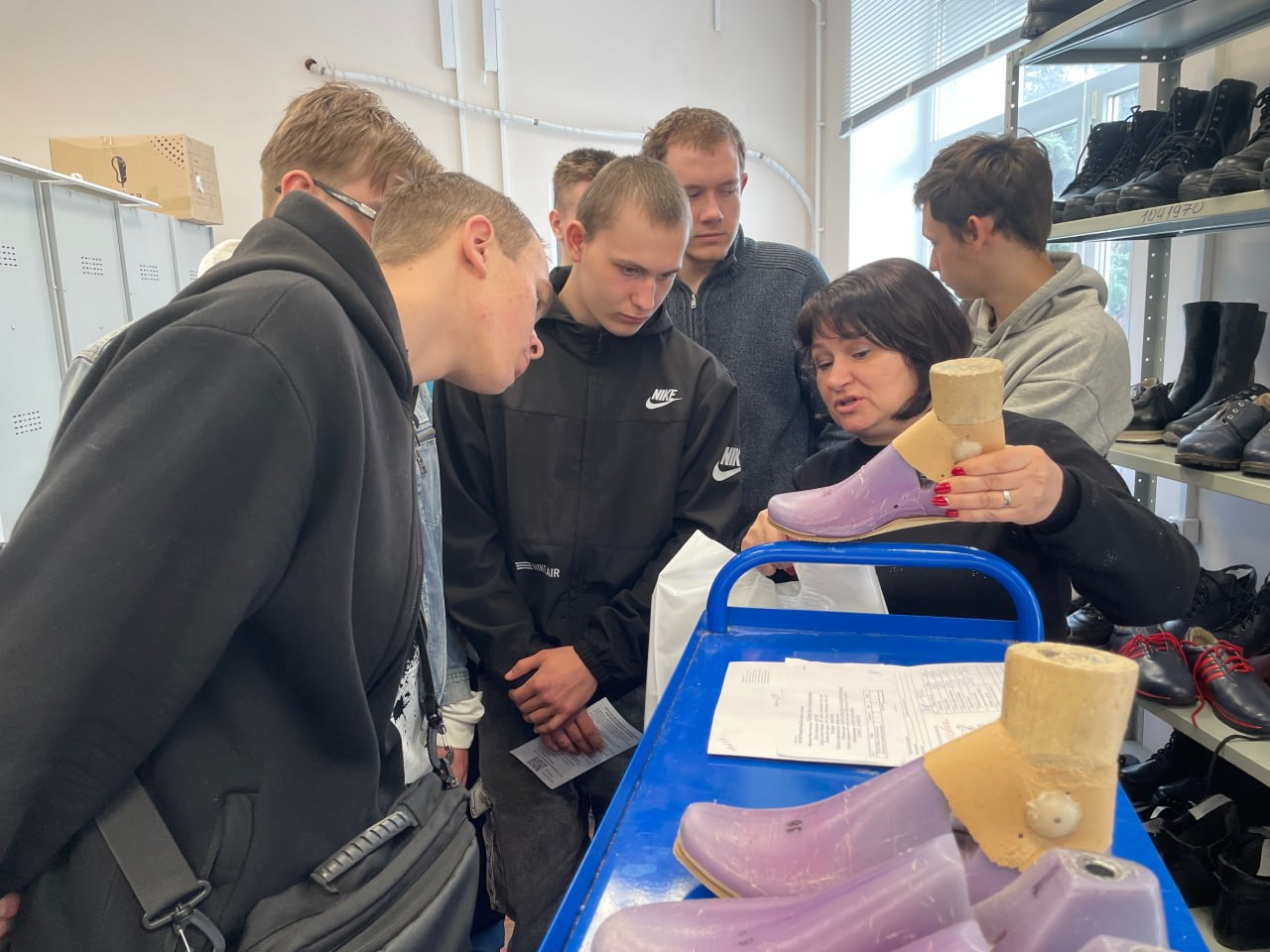 Учащиеся первого и второго курсов - будущие мастера по сборке обуви, посетили цех по изготовлению ортопедической обуви. Они увидели, как создаются изделия по индивидуальным заказам, узнали о нюансах работы с различными материалами и современных технологиях производства. Воочию студенты ознакомились с работой различных станков и прессов. Особенно ребятам запомнились демонстрации работы затяжчика и раскройщика обуви — их виртуозное владение инструментами и скорость обработки деталей вызвали восхищение.
