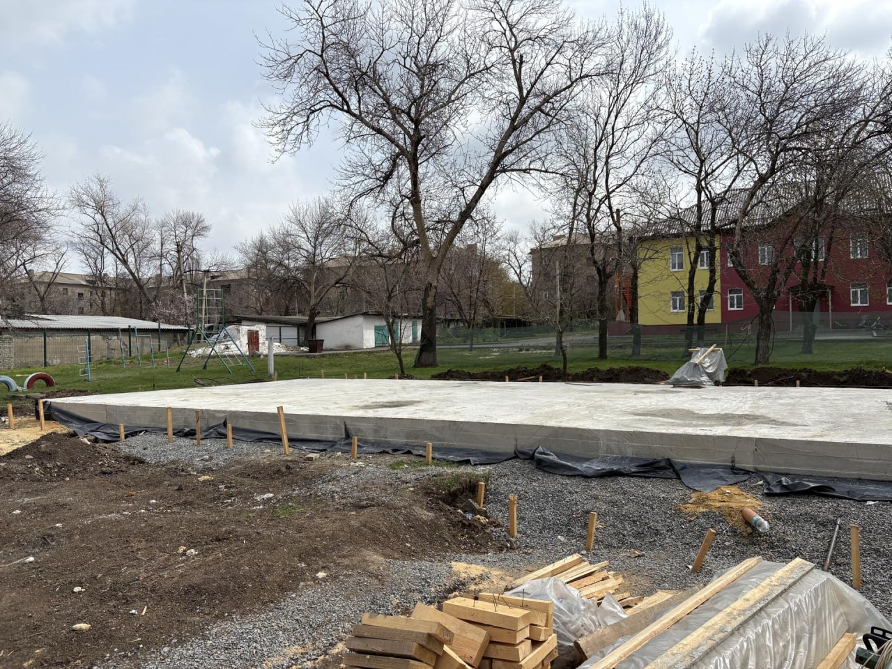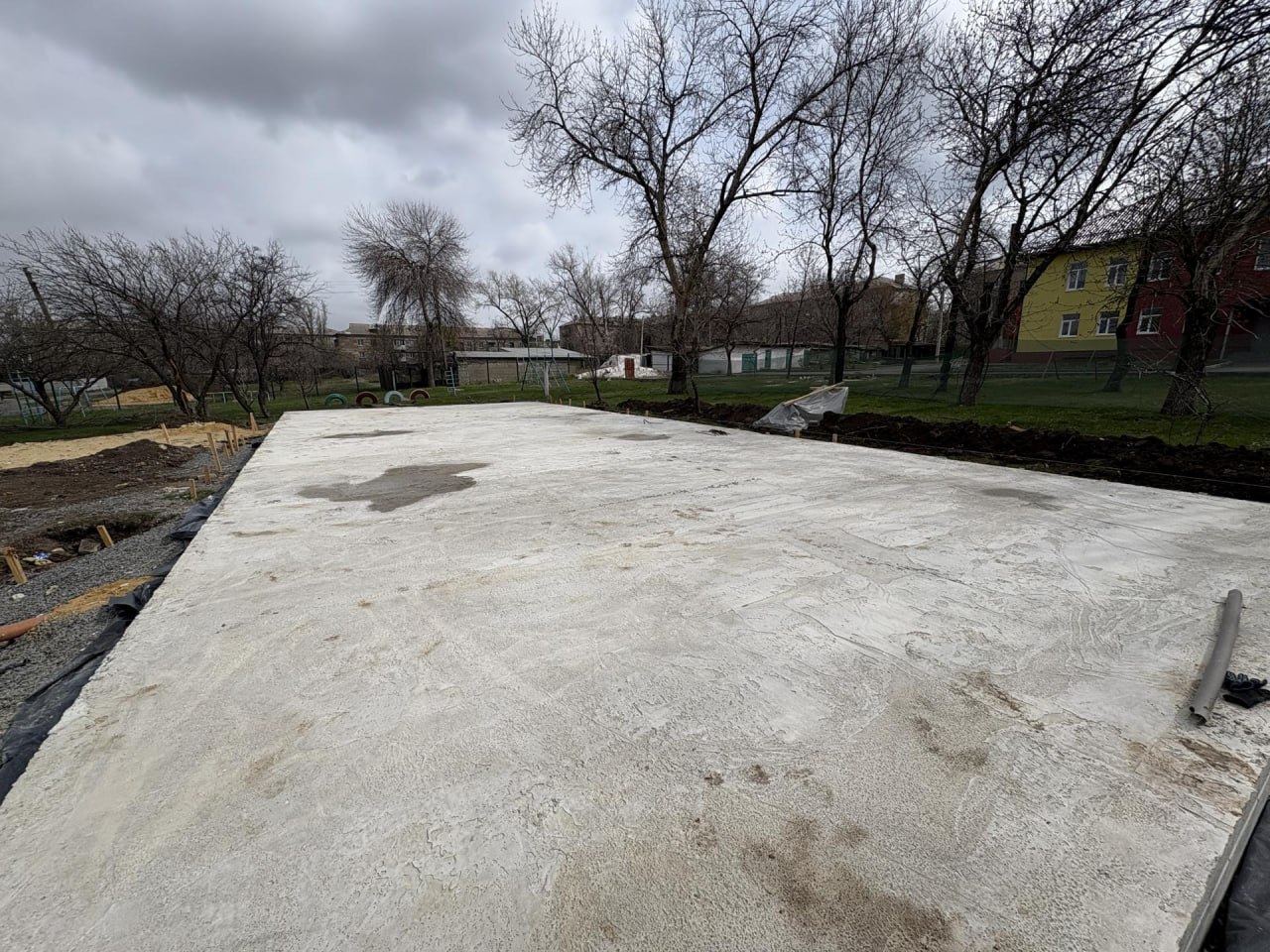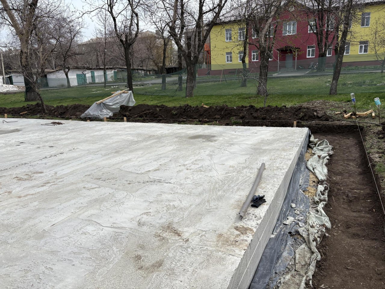 В Стожковском детском саду № 16 приступили к заливке фундамента здания.