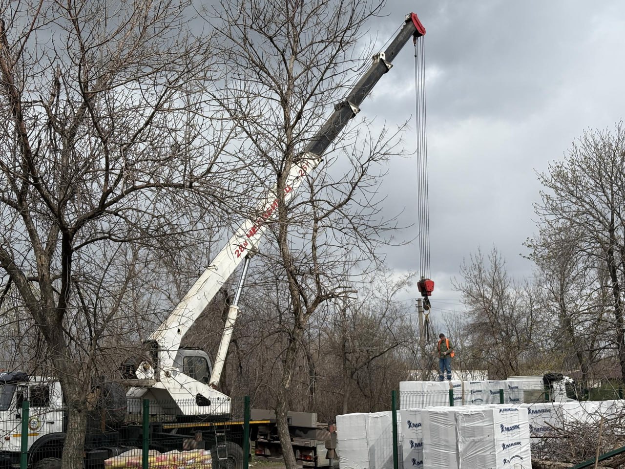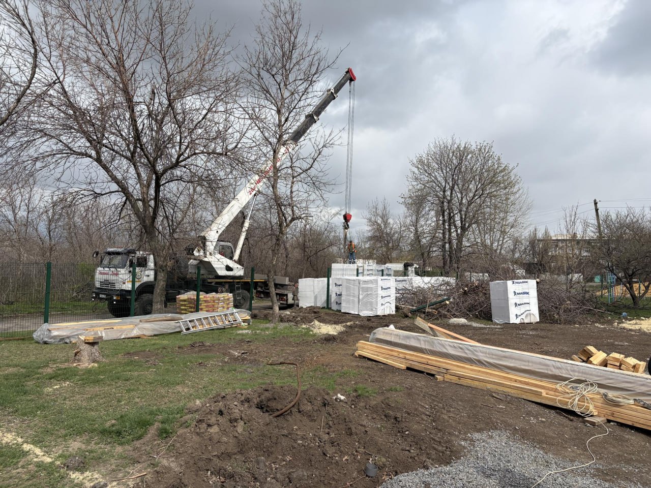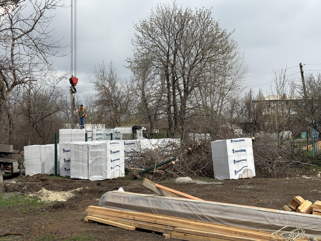 На объект завезли строительный материал для возведения стен, которые будут выполнены из современных газобетонных блоков.