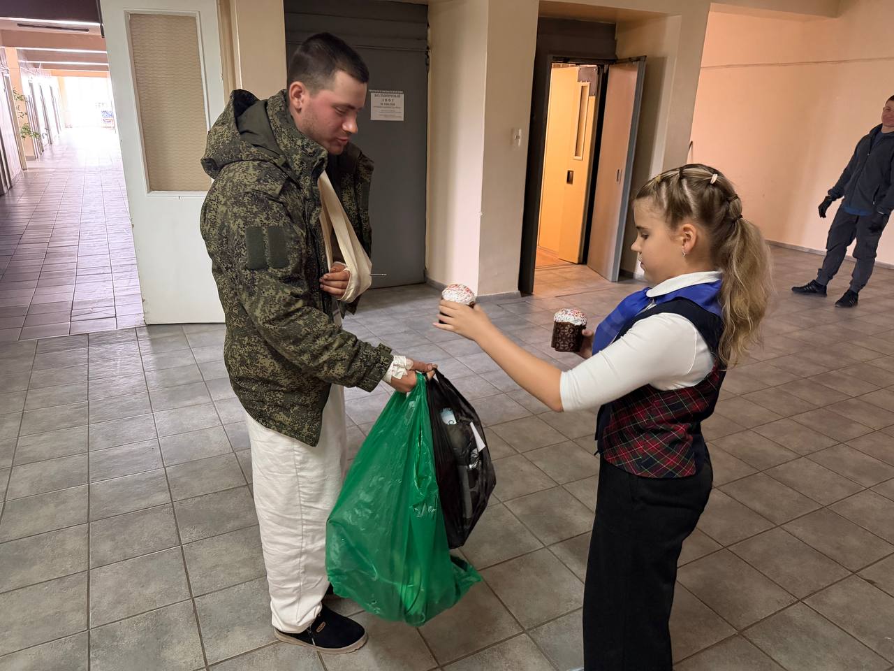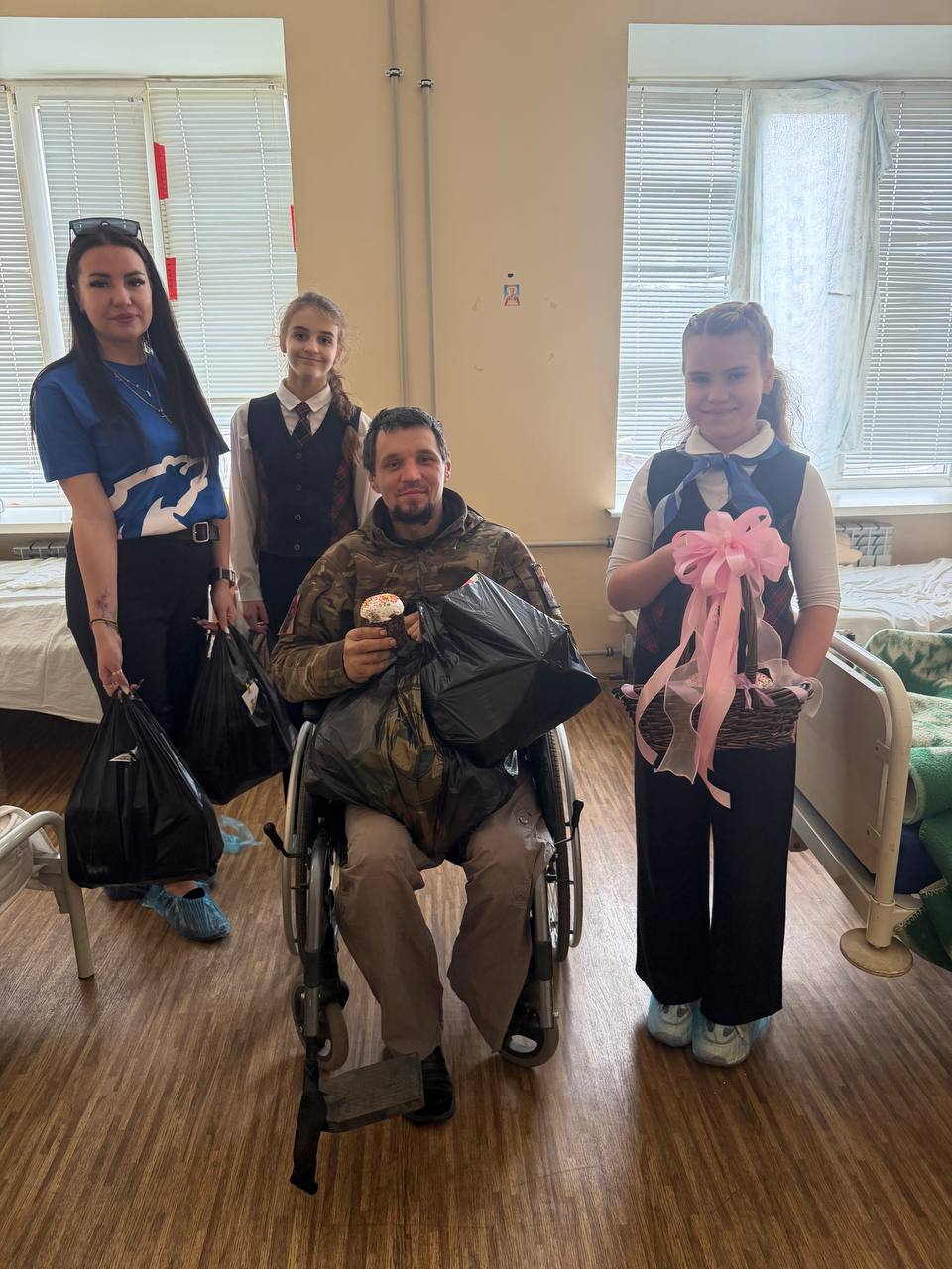 В преддверии великого праздника Светлой Пасхи актив «Женского движения Единой России» города Ясиноватая вместе с детками традиционно навестили военнослужащих, которые проходят реабилитацию в одной из больниц города. Привезли ребятам куличи и наборы гигиены, а дети – стихотворения и самые добрые пожелания.