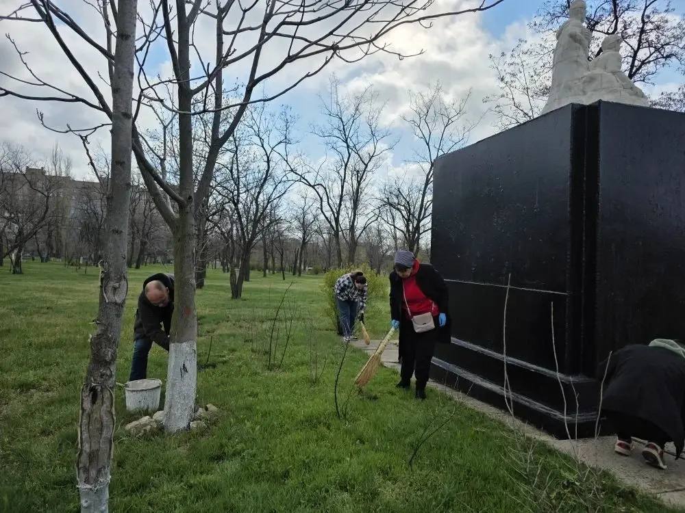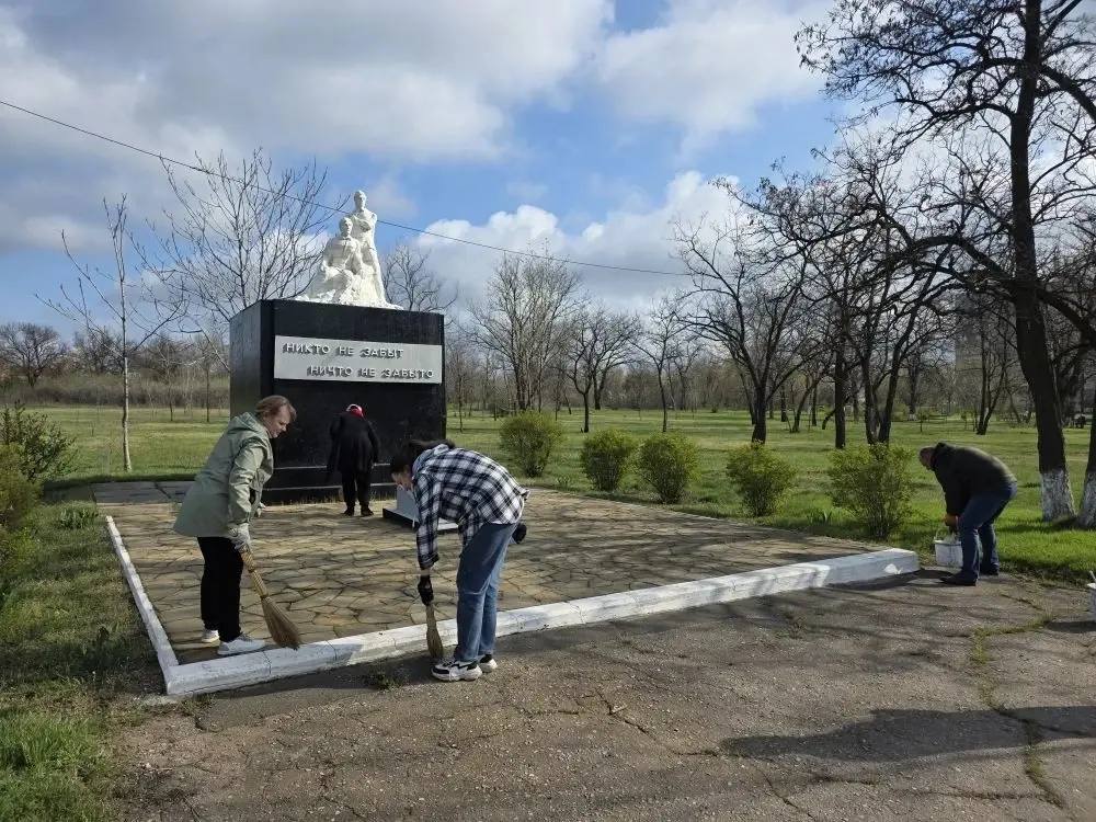 Сегодня, 11 апреля, в рамках проекта «Единой России» «Городская среда» сотрудники Моспинского территориального управления администрации городского округа Донецк приняли участие в общереспубликанском субботнике, очистив от листвы и случайного мусора территорию памятника, расположенного в парке Молодёжном, и осуществили побелку бордюров, а сотрудники других учреждений и организаций организовали уборку и побелку на закреплённых за ними территориях.