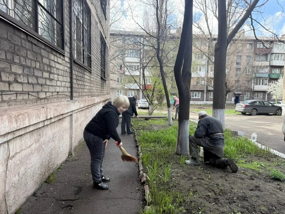 Сотрудники социальной сферы обслуживания населения на общереспубликанском субботнике