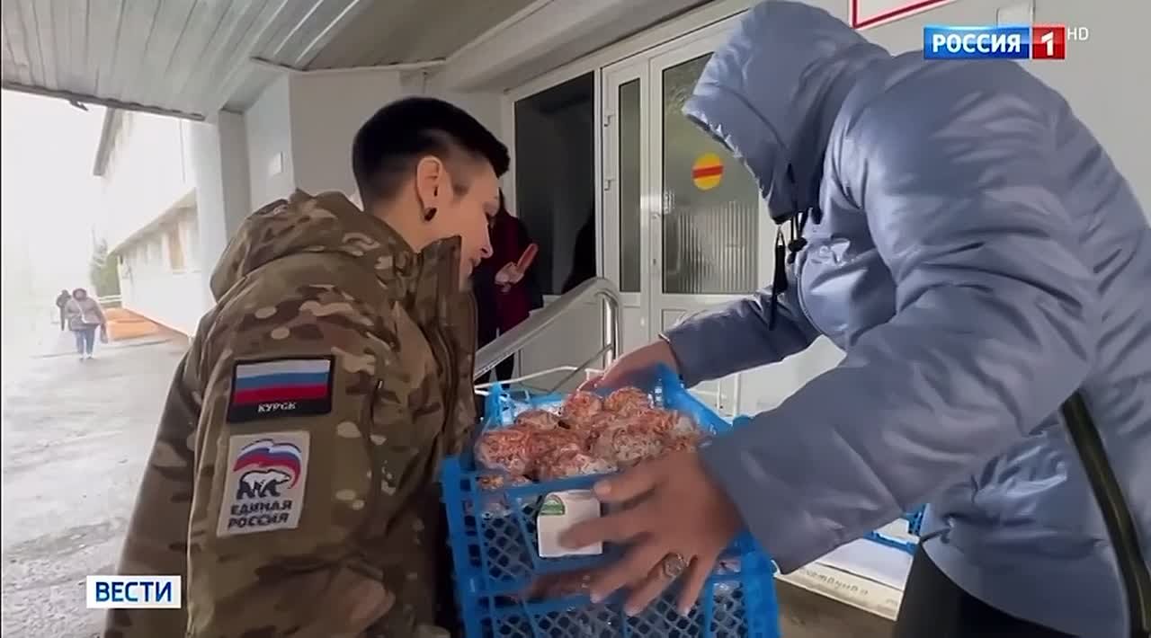 Четыре тысячи куличей освятили в столичном Храме иконы Божьей Матери и отправили на фронт активисты Единой России. В Курской области волонтеры доставили военнослужащим в госпиталь праздничные угощения и письма школьников.