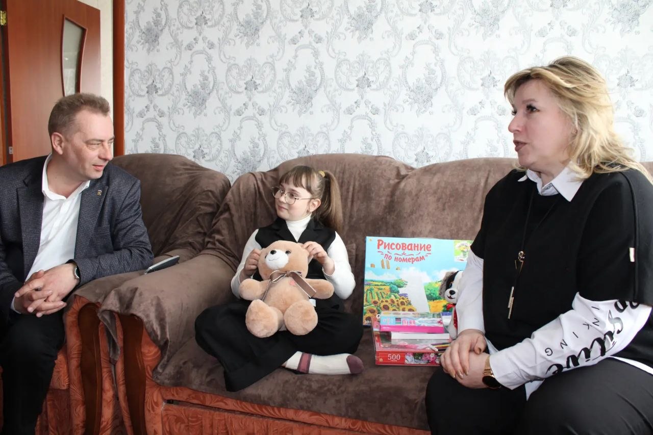 Также посетили маленькую краснолиманку и ее семью. Поздравил Адель с наступающими Пасхальными торжествами. Презентовал пасхальный кулич для семьи, наборы для творчества и канцелярские принадлежности для девочки.