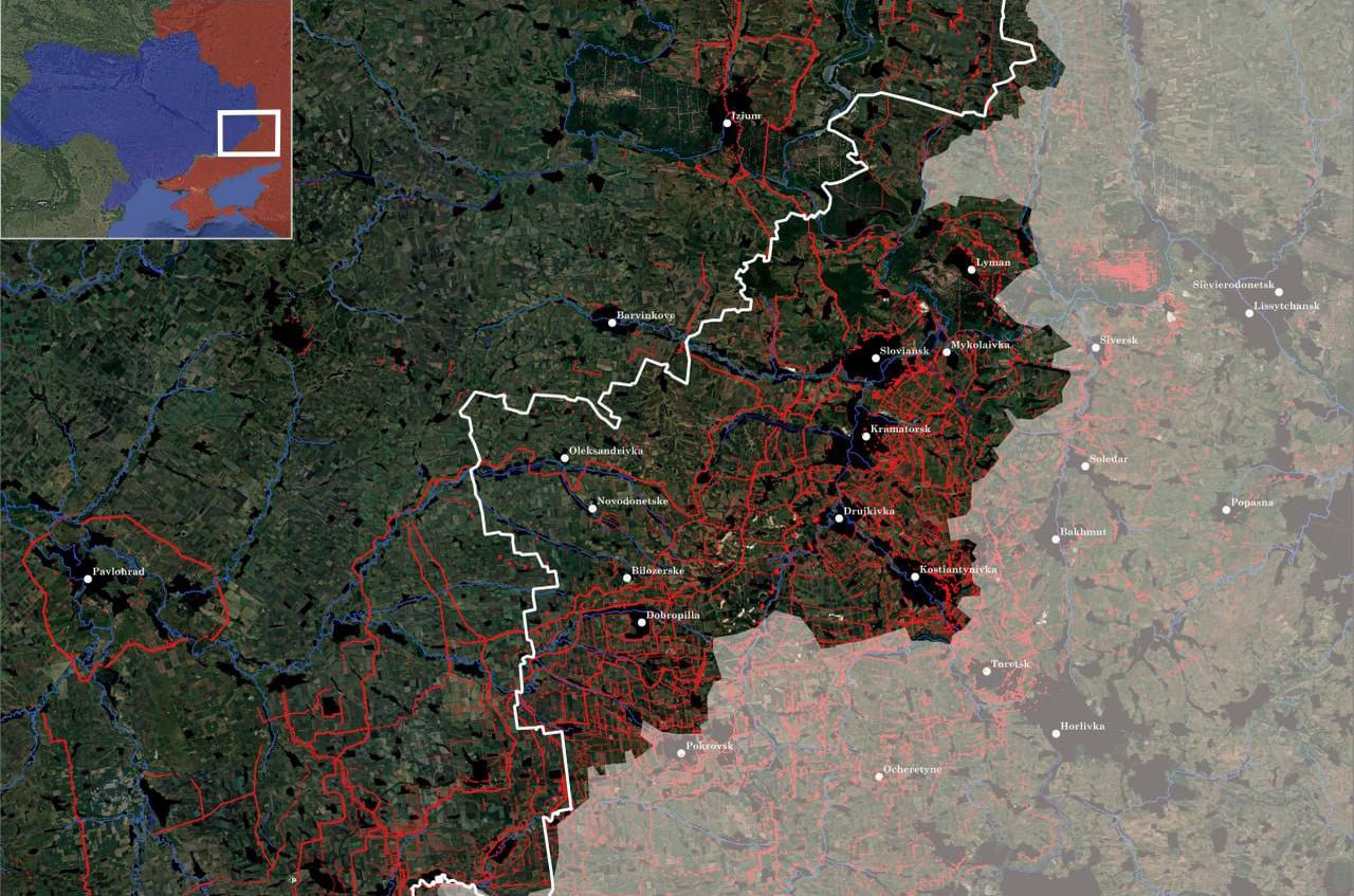 В сети начала ходить детальная карта украинских укреплений в Донецкой области. Красным отмечены все крупные оборонные линии ВСУ. Если подробно рассмотреть эту карту, то прекрасно видно, что «Донбасская линия» является единственной полосой обороны ВСУ в восточной части Украины.