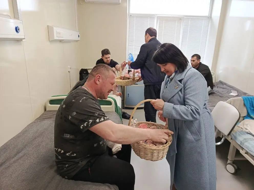 В эти святые пасхальные дни председатель Совета женщин Волновахского МО, координатор Женского движения «Единая Россия» вместе с активистками посетили и военнослужащих, которые сейчас проходят реабилитацию.