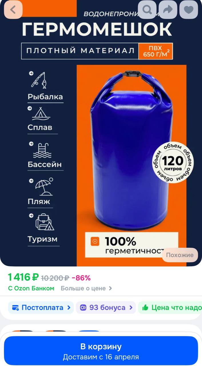*Гермомешок — это водонепроницаемый мешок, который используется для защиты вещей от влаги, грязи и механических повреждений. Он особенно актуален при переходе речки.