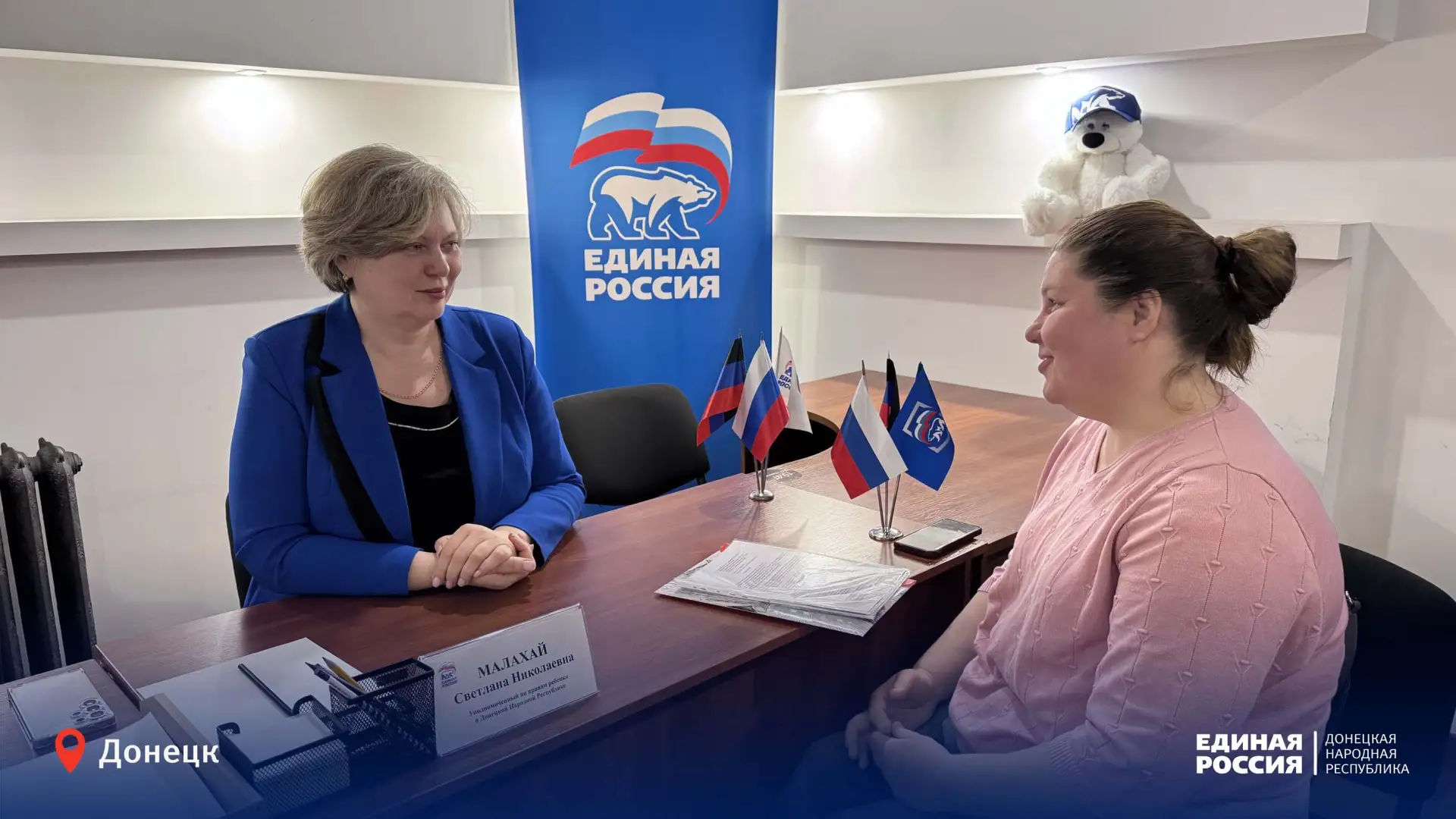 В региональной общественной приёмной Единой России прошёл приём жителей Республики, который провела уполномоченный по правам ребёнка в Донецкой Народной Республике Светлана Малахай.