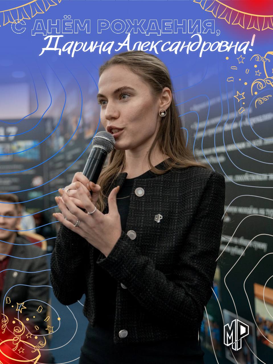 Дарина Александровна, в этот особенный день хотим выразить нашу искреннюю благодарность за вашу преданность делу и неоценимый вклад в развитие молодёжной политики.