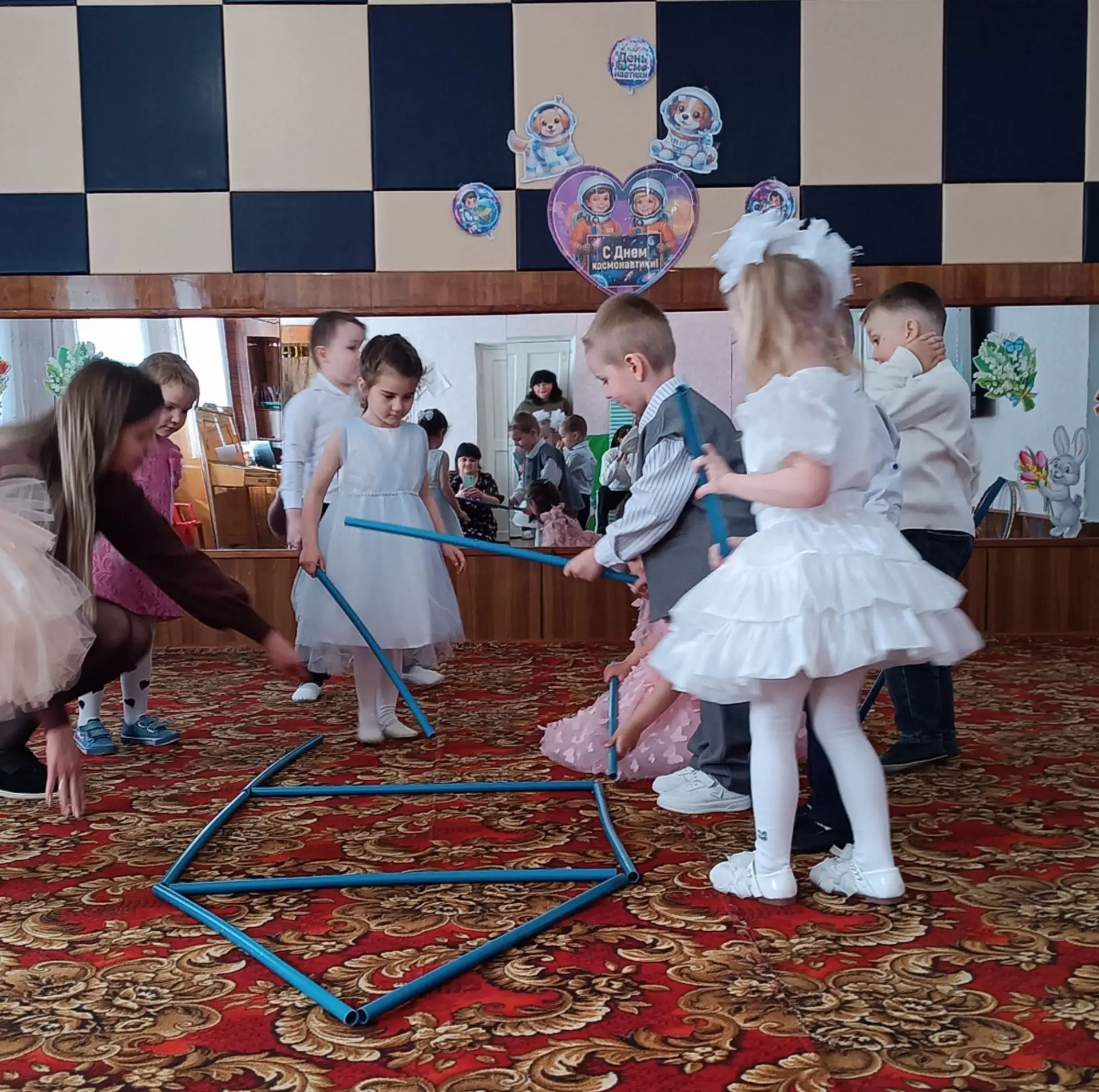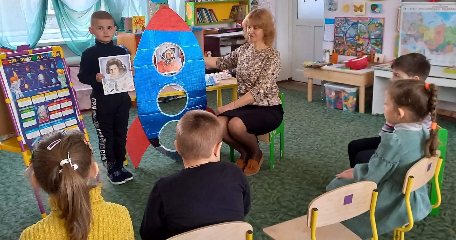 В рамках тематической недели, посвященной Дню космонавтики, воспитанники в игровой форме познакомились с историей освоения космического пространства, узнали о Юрии Гагарине, Валентине Терешковой, первых космических путешественниках — собаках Белке и Стрелке. Дети рассматривали иллюстрации планет и космических кораблей, участвовали в викторинах, читали стихи, выполняли творческие работы.