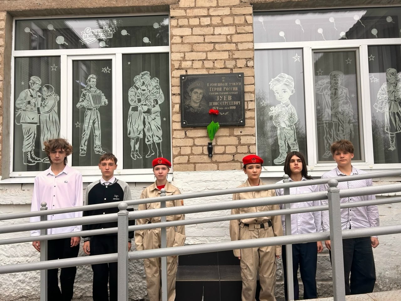 В начале встречи все присутствующие почтили минутой молчания Дениса Зуева. Затем ребята возложили цветы к мемориальной доске, установленной в честь Героя, и посмотрели документальную кинохронику, рассказывающую о его жизни и подвигах.