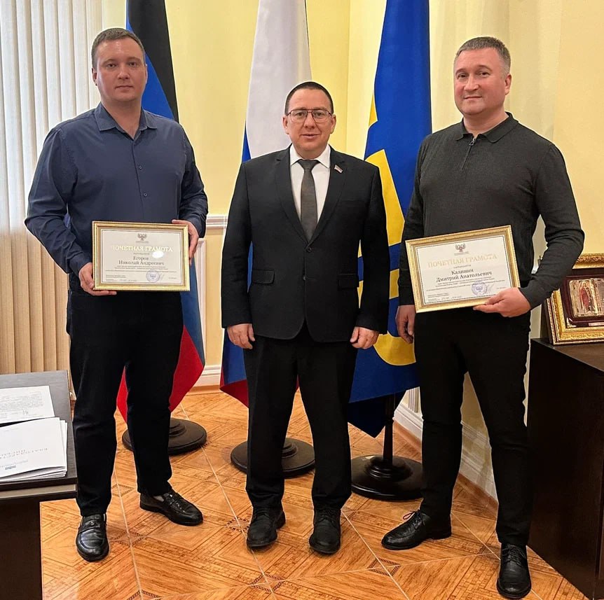 Вклад наших соратников-однопартийцев, чей личный фронт работ связан с помощью и военным, и гражданским жителям Донбасса, находит признание не только в людских сердцах и душах, но и на официальном уровне. Вместе с Александром Борисовичем Вазанковым сегодня вручили почетные грамоты Народного Совета Донецкой Народной Республики за подписью Председателя парламента Константина Александровича Кузьмина труженикам Центра юридической помощи ЛДПР в ДНР.