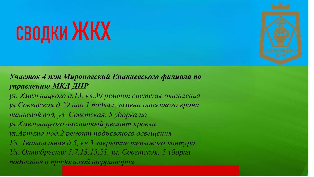 СВОДКИ ЖКХ в городском округе Дебальцево