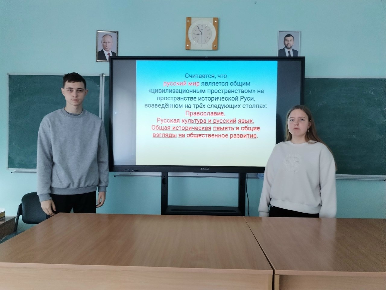 Школьники узнали о ключевых событиях марта-апреля 2014 года, которые стали отправной точкой для проведения всенародного референдума в Донецкой области и последующего создания Донецкой Народной Республики. Особое внимание уделялось объяснению термина «Русская весна».