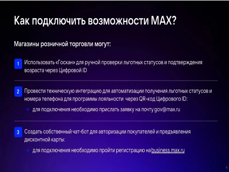 интеграция с API MAX на кассе и кассе самообслуживания.