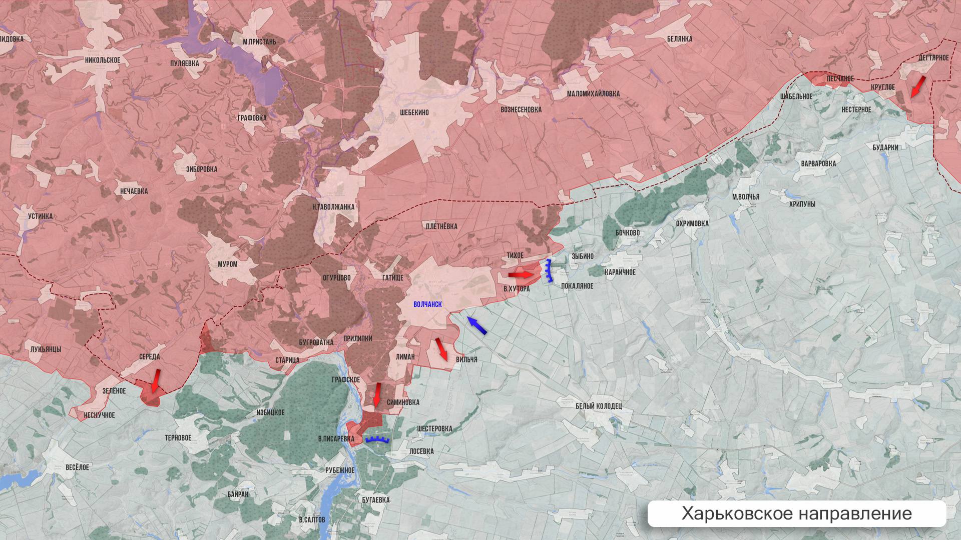 На Харьковском фронте ВС РФ ведут бои в лесных массивах к востоку от Избицкого, а также уничтожают транспорт на дороге в Рубежное. МО РФ сообщило об освобождении Волчанских Хуторов, бои за которые продолжались несколько месяцев.
