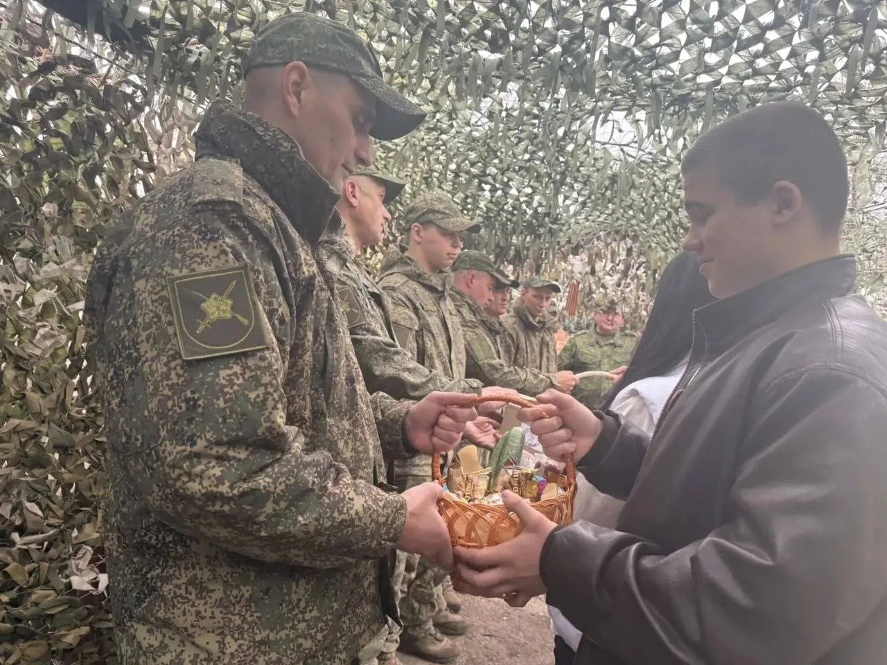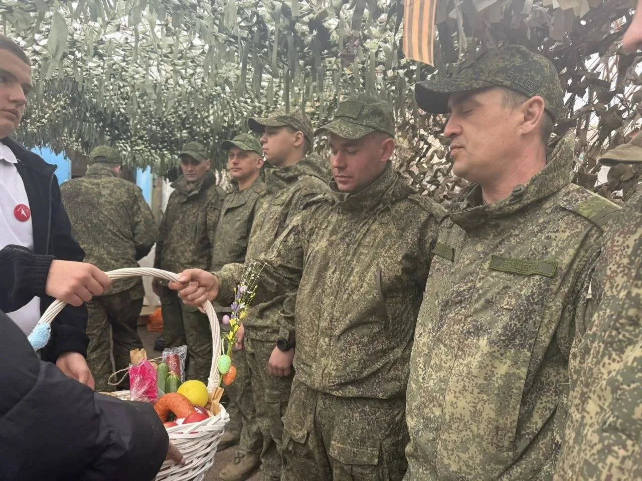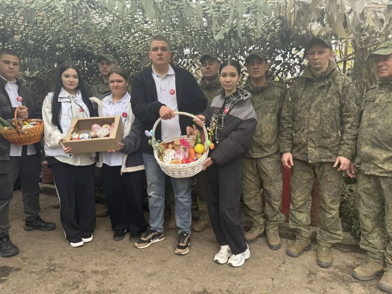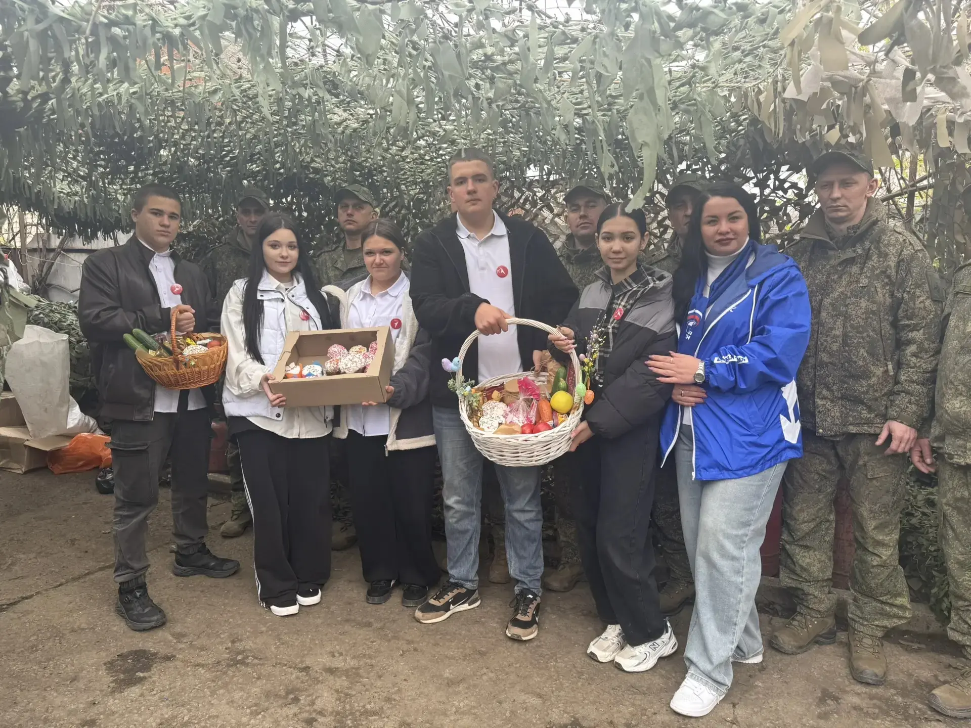 Активисты Движения Первых, ученики ГБОУ «Мироновская школа №10 г.о. Дебальцево», совместно с руководителем общественной приёмной партии «Единая Россия» Анжеликой Сергеевной Россохой, с радостью поздравили воинов, участвующих в специальной военной операции, со светлым праздником Пасхи.