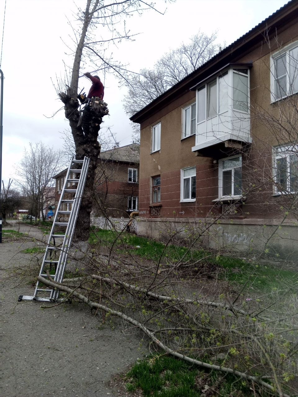 В Старобешевском округе продолжаются работы по кронированию аварийных деревьев.