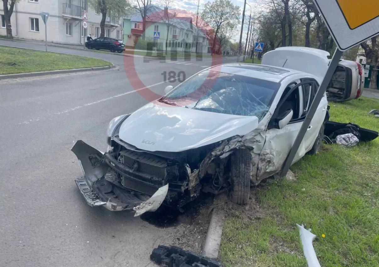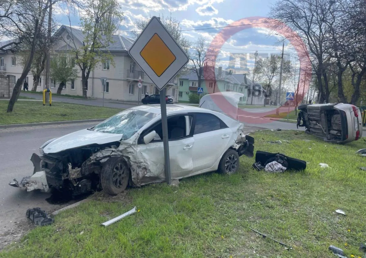 Водитель автомобиля белой Kia, выезжая со второстепенной дороги, не предоставил преимущество автомобилю Kia,что привело к столкновению , после чего Kia Rio выехал за пределы проезжей части и опрокинулся.