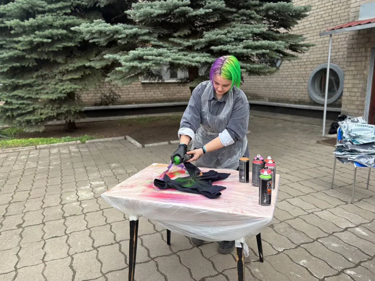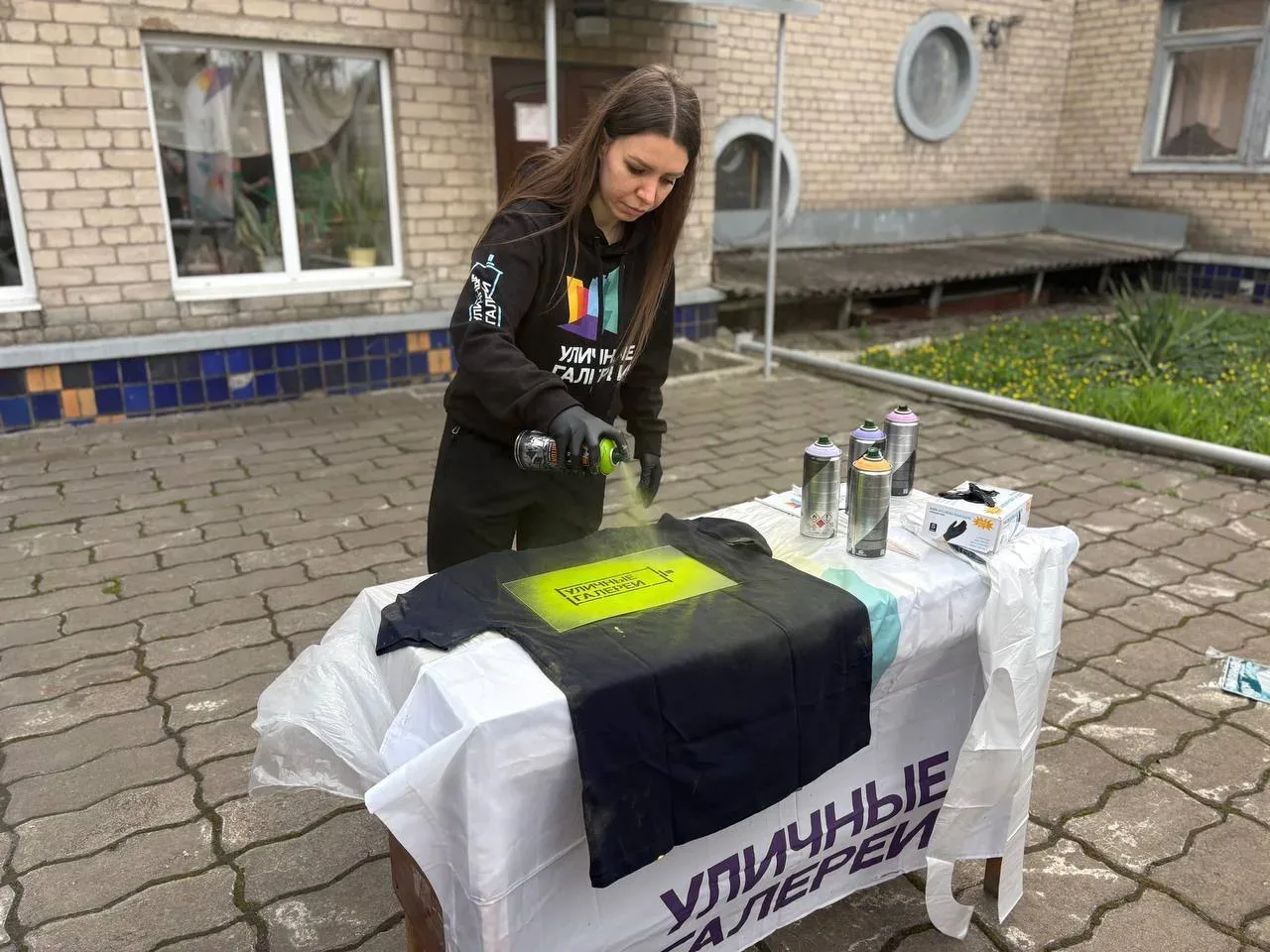 Участникам были представлены основные этапы работы с аэрозольными красками по ткани, после чего они приступили к самостоятельному оформлению футболок в соответствии с собственными предпочтениями.