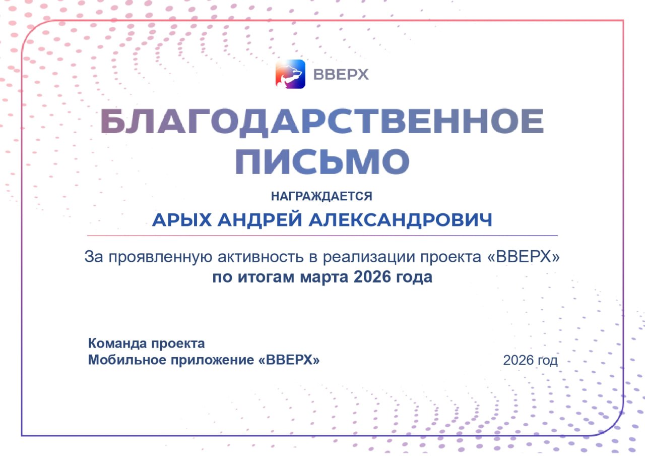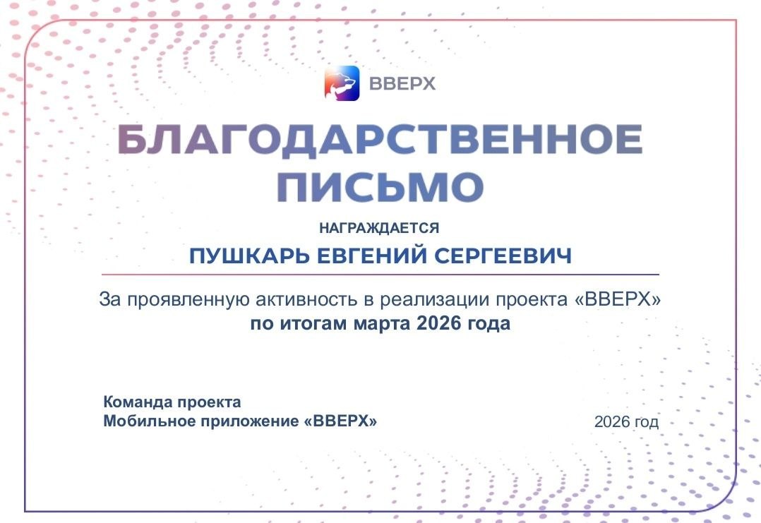 Депутаты Волновахского муниципального совета Донецкой Народной Республики Андрей Арых и Евгений Пушкарьудостоены высокой оценки своего труда - Благодарственными письмами за проявленную активность в реализации проекта "ВВЕРХ" по итогам марта 2026 года.