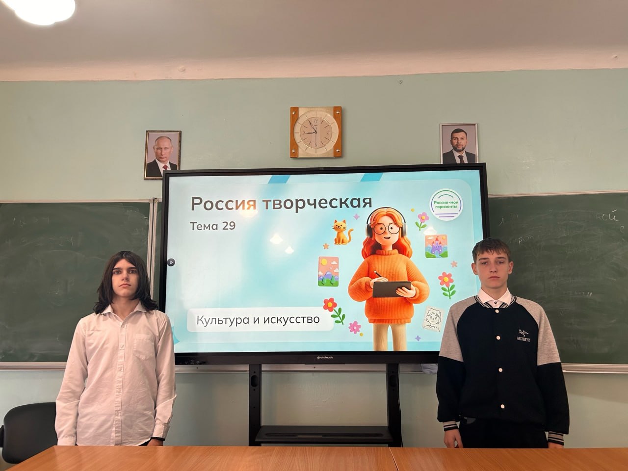 16 апреля в школах города в рамках курса внеурочной деятельности «Россия — мои горизонты» прошли занятия на тему «Россия творческая: культура и искусство».