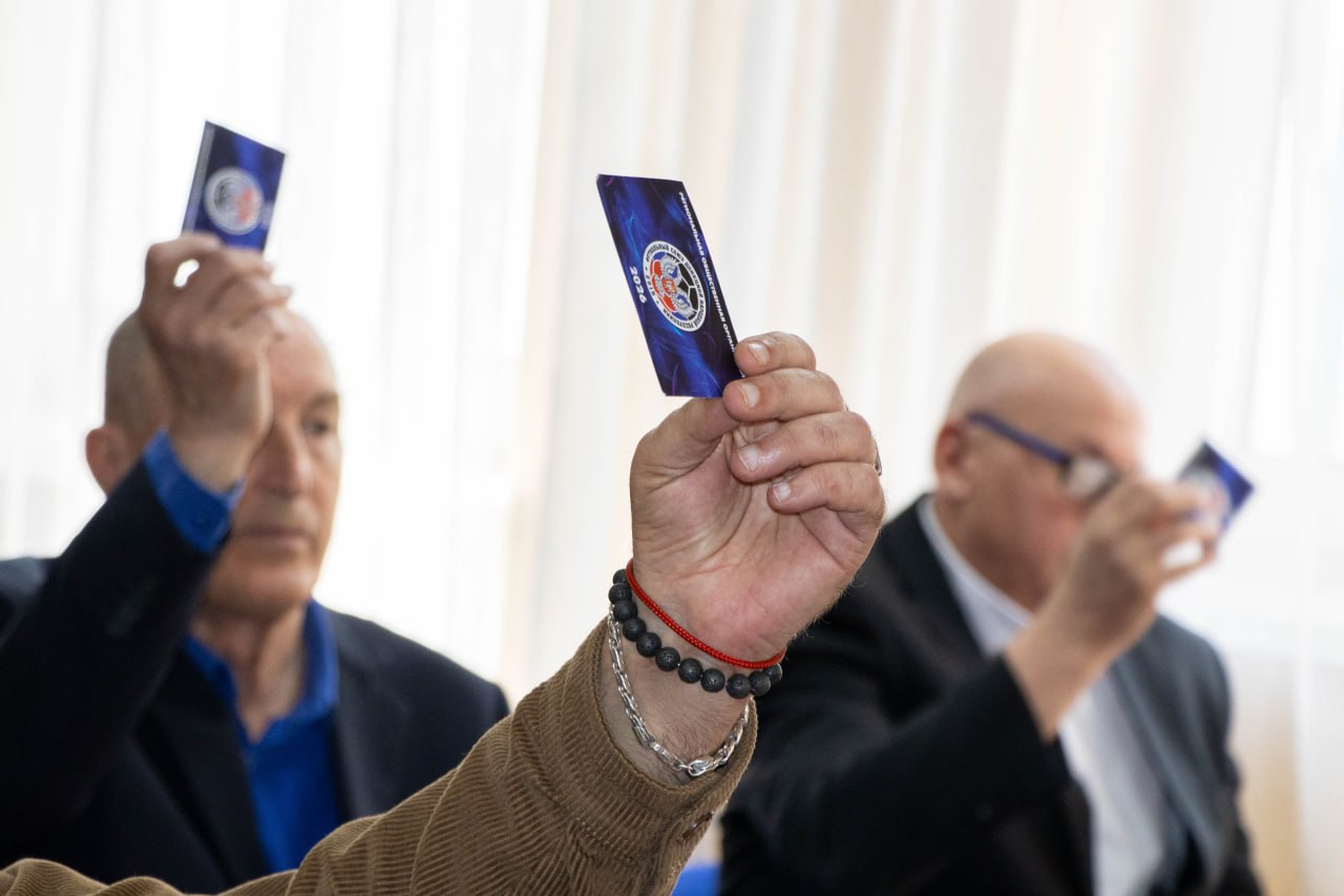 В стенах училища Олимпийского резерва прошла учредительная конференция Футбольного союза ДНР. Сорок два делегата - тренеры, руководители клубов, директора ДЮСШ - съехались со всей республики. Люди, которые все эти годы не бросали своё дело, не уезжали, продолжали работать с детьми, тянули на себе секции и команды.
