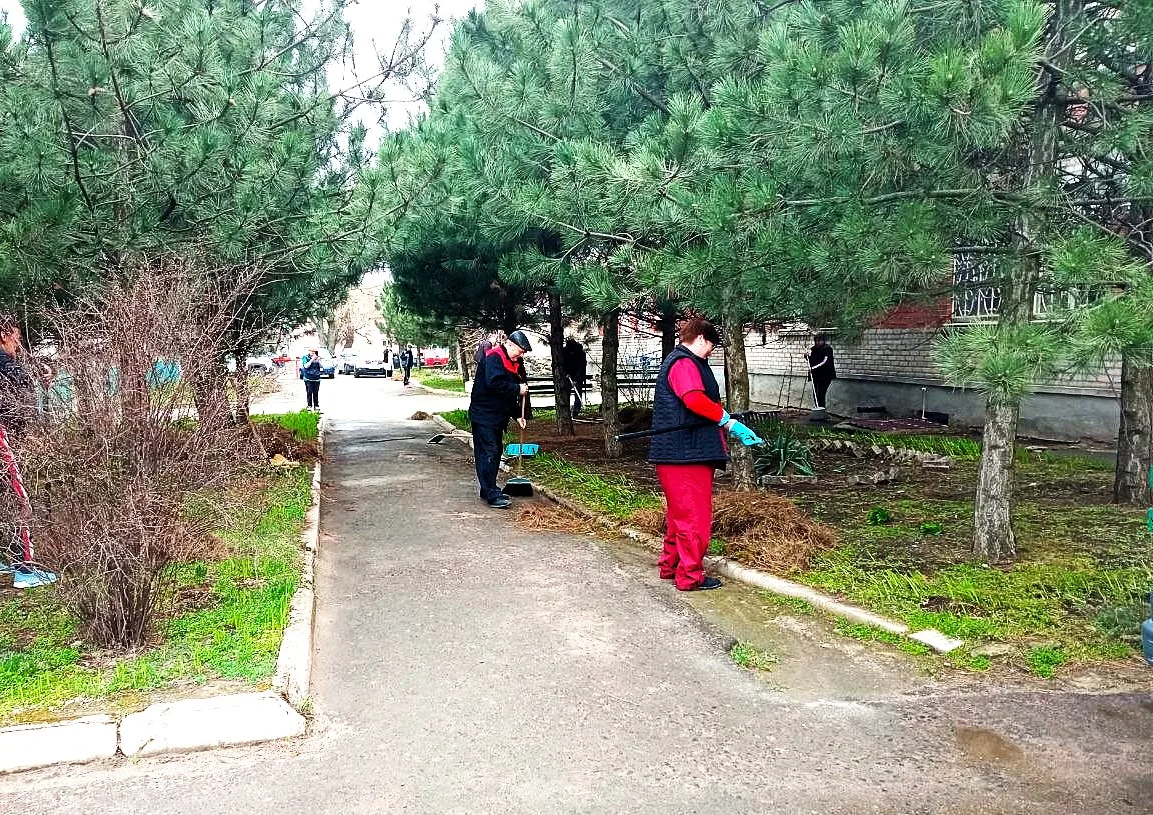 Вооружившись мётлами, граблями и кистями, сотрудники Мангушской ЦРБ наводили порядок. Ктото сгребал листву, ктото подметал дорожки, а ктото красил бордюры. Совместными усилиями собрали десятки мешков мусора — территория заметно преобразилась.