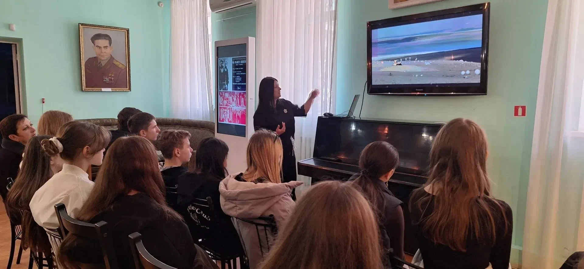 16 апреля состоялся звездный кинолекторий по молодежным научно-фантастическим фильмам «Москва — Кассиопея» и «Отроки во Вселенной». Мероприятие посетили учащиеся 8-го класса школы № 1 городского округа Енакиево.