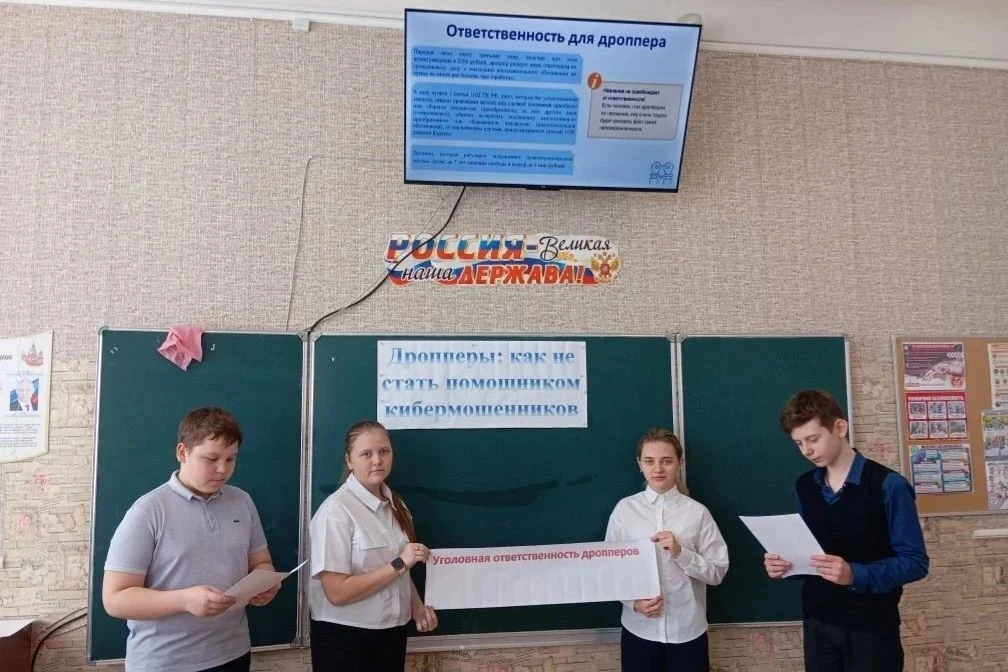 16 апреля в рамках нацпроекта "Молодеж и дети" в Марьяновской школе Старобешевского округ состоялась профилактическая беседа с учащимися 8-11 классов, посвященная теме «Дропперство». Это распространенный вид мошенничества, при котором подставные лица (дропперы) участвуют в незаконных финансовых операциях, часто под влиянием обещаний легкого заработка.