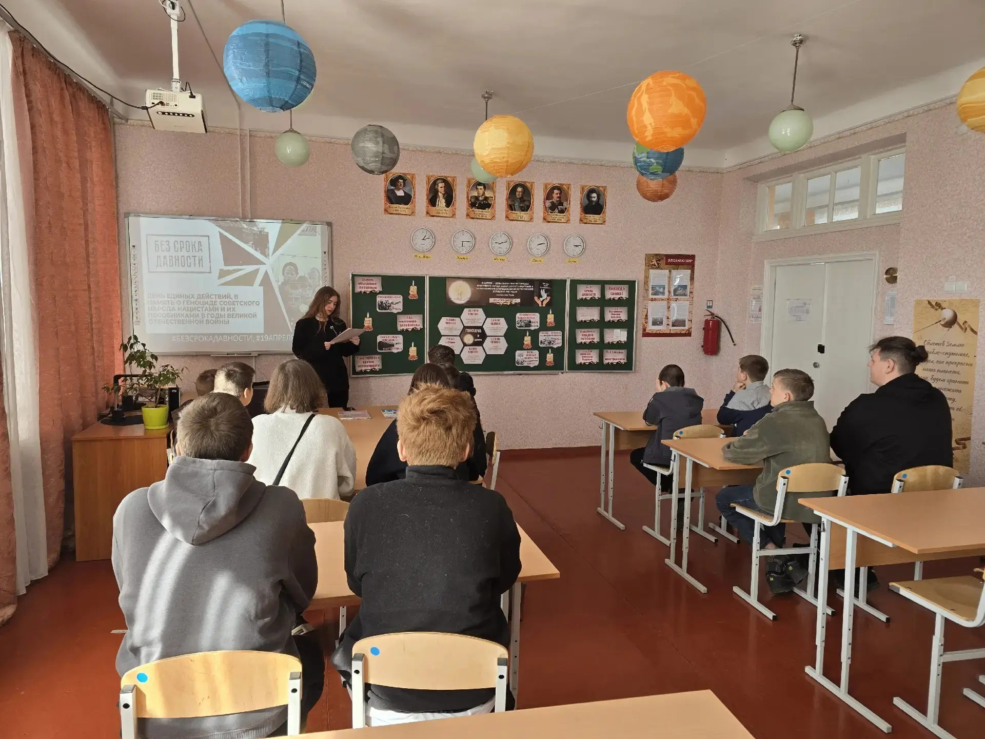 В ГБОУ "Луганская школа N12 г.о Дебальцево" 16 апреля во всех классах с 5го по 11й прошли тематические классные часы «Без срока давности». Мероприятие было посвящено сохранению исторической памяти о трагедии мирного населения СССР — жертв военных преступлений нацистов и их пособников в годы Великой Отечественной войны.