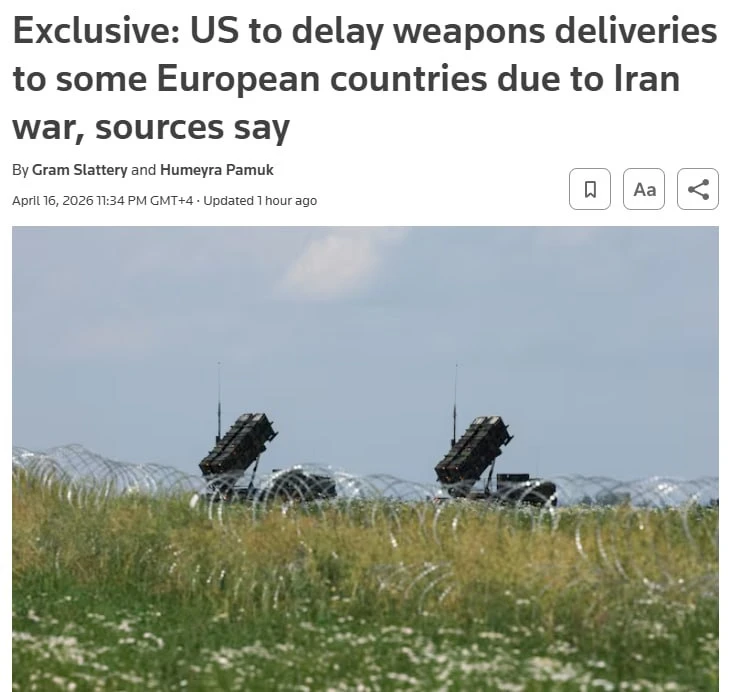 На фото: Странам ЕС придётся долго ждать поставки оружия из США, пишет Reuters. Запасы Вашингтона истощены войной с Ираном.