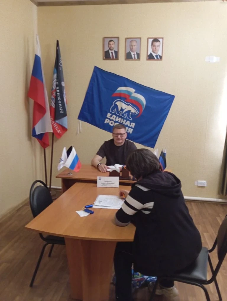 Депутат Народного Совета Донецкой Народной Республики Вадим Морозов провел личный приём граждан в общественной приёмной Партии "ЕДИНАЯ РОССИЯ" Старобешевского муниципального округа.
