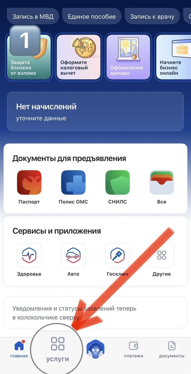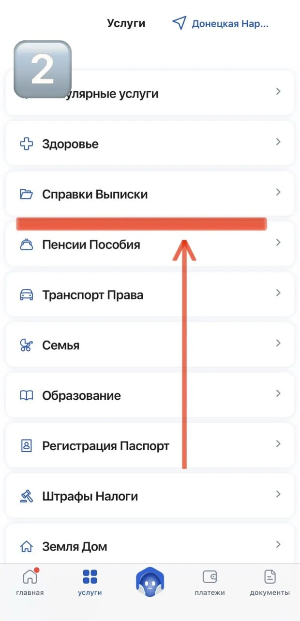 2Выберите раздел "Услуги" категорию "Справки и выписки".