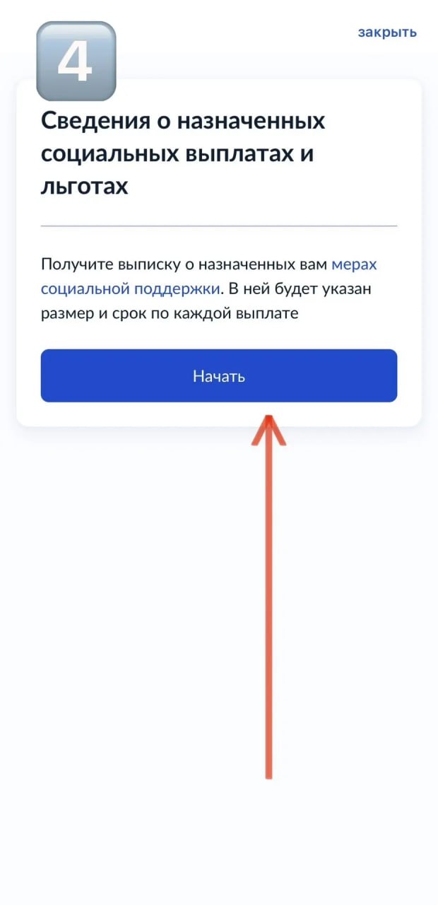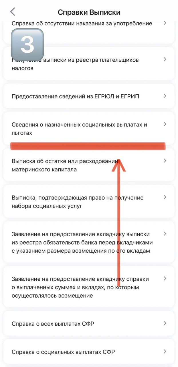 3Выберите пункт "Сведения о назначенных социальных выплатах и льготах".
