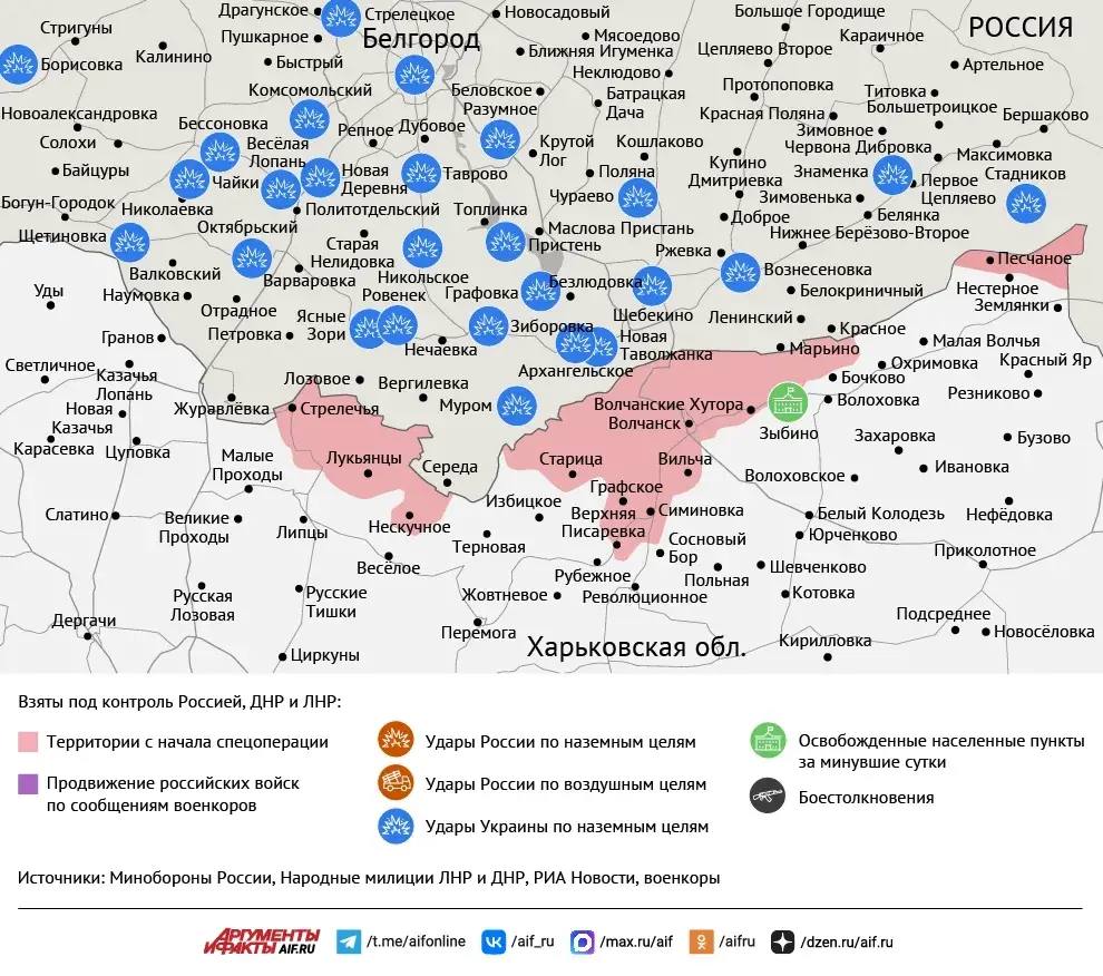 По данным Минобороны РФ, наша армия освободила в Харьковской области село Зыбино, расширяя зону безопасности на границе с Белгородчиной. Кроме того, российские бойцы продвигаются в ДНР, постепенно выбивая противника из Константиновки и Красного Лимана.