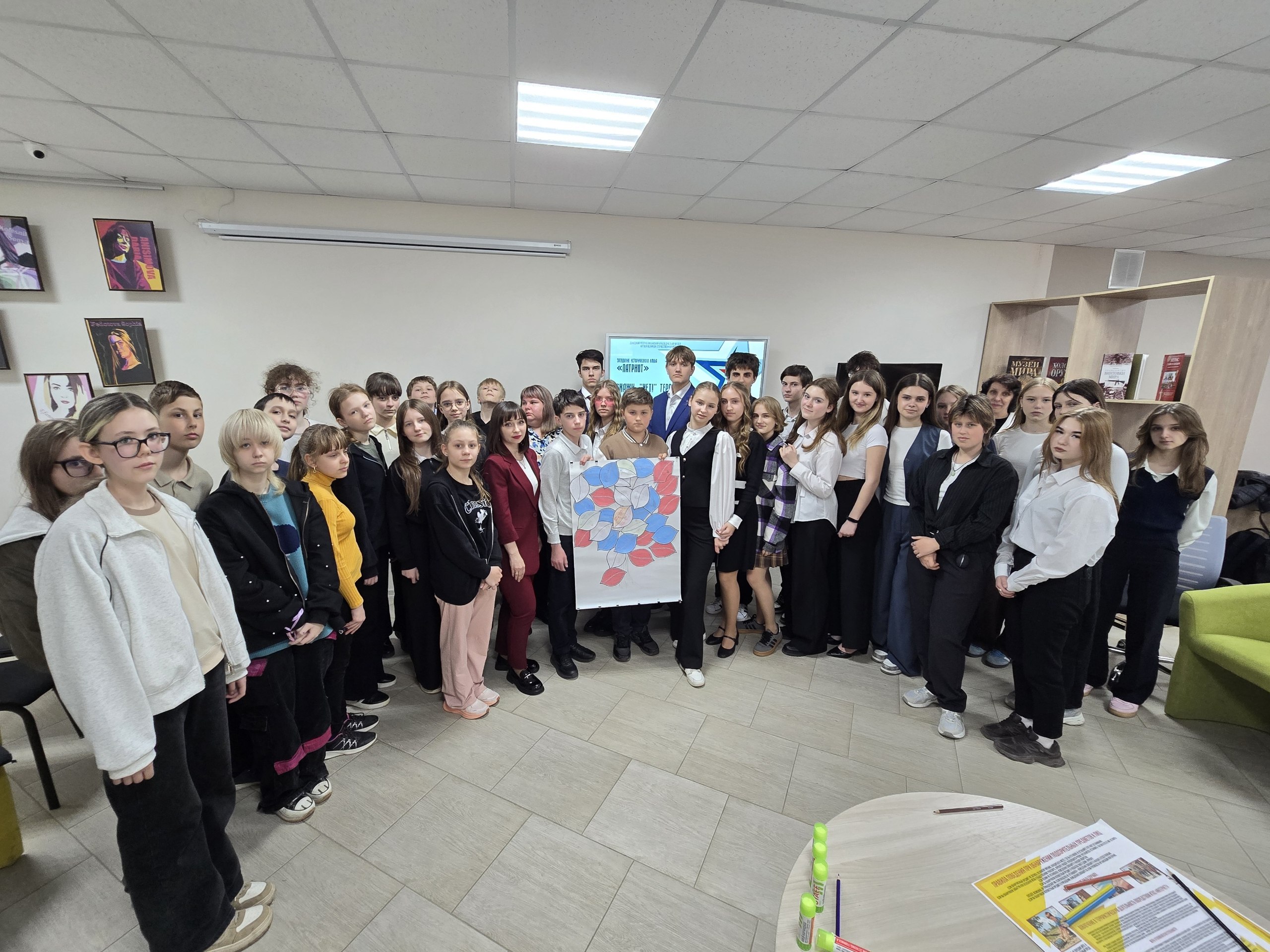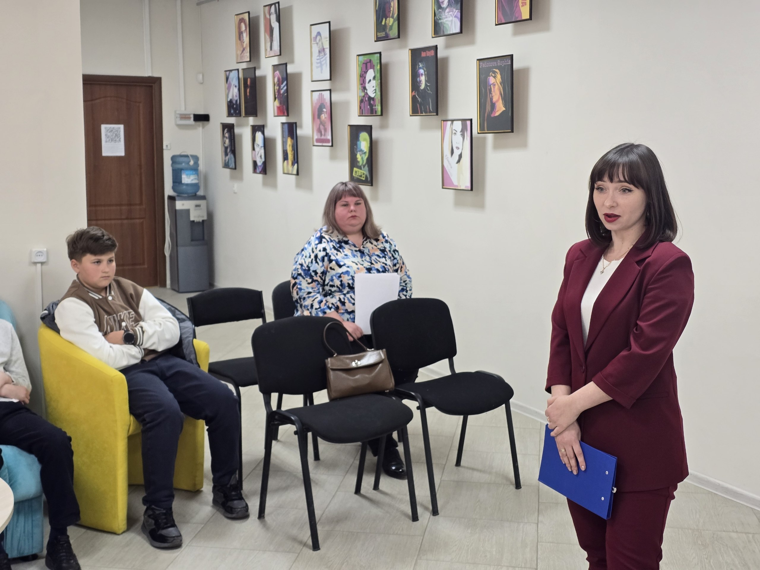 Перед школьниками выступила Альбина Вышкварко, член Молодежного совета Минкультуры ДНР. Она рассказала ребятами о методах вербовки в интернете, рисках сомнительных предложений и правилах поведения в опасных ситуациях.